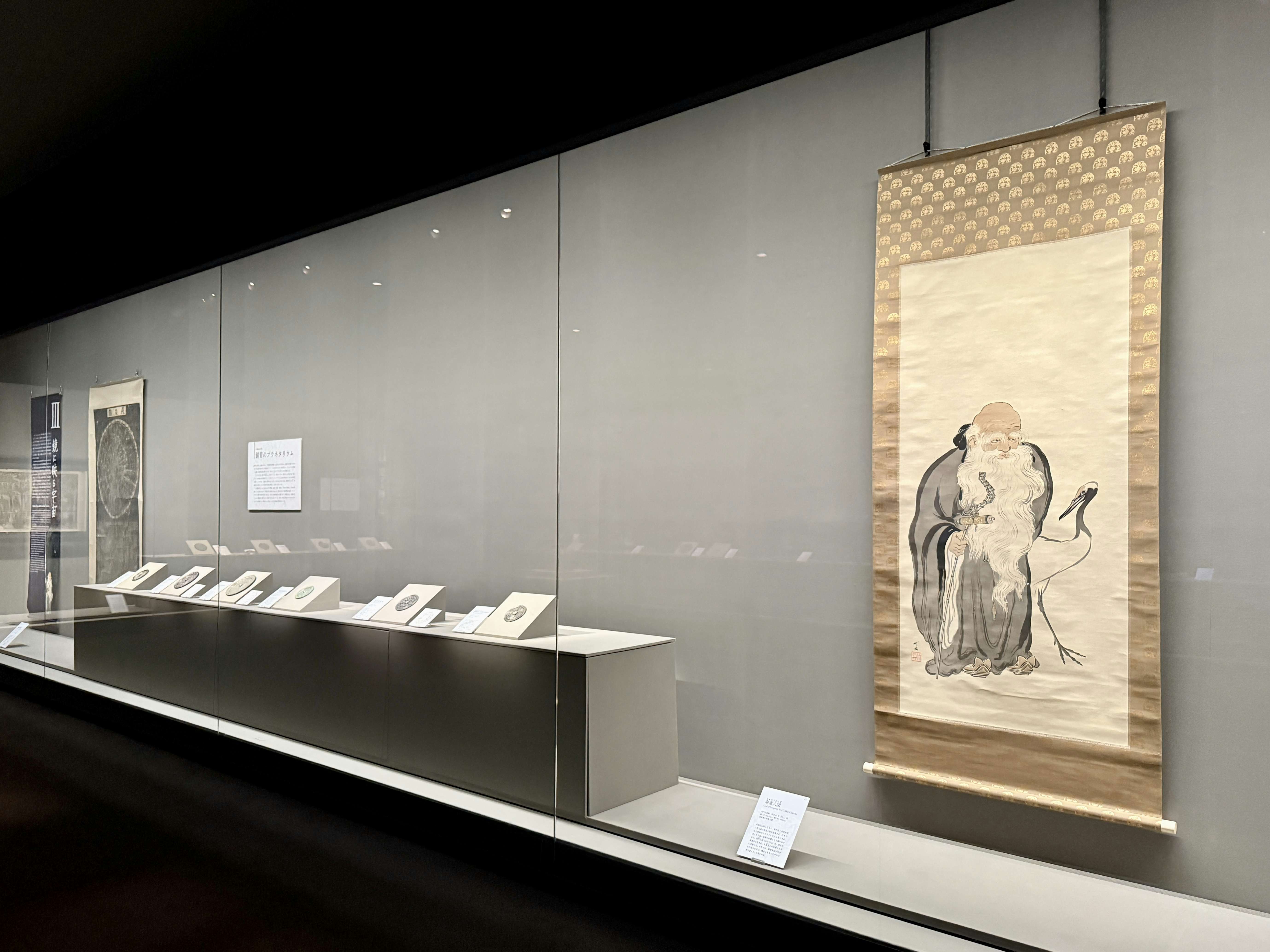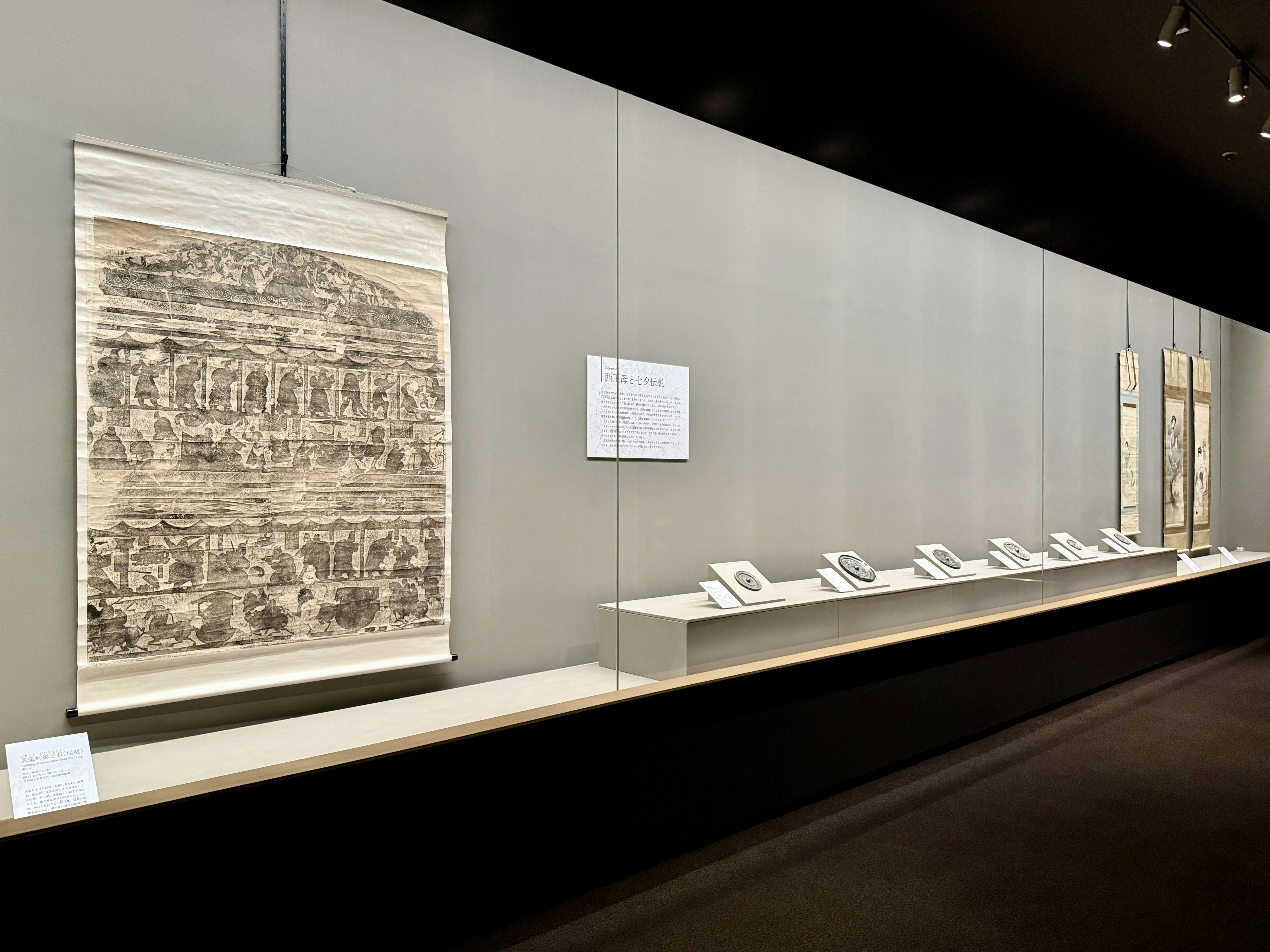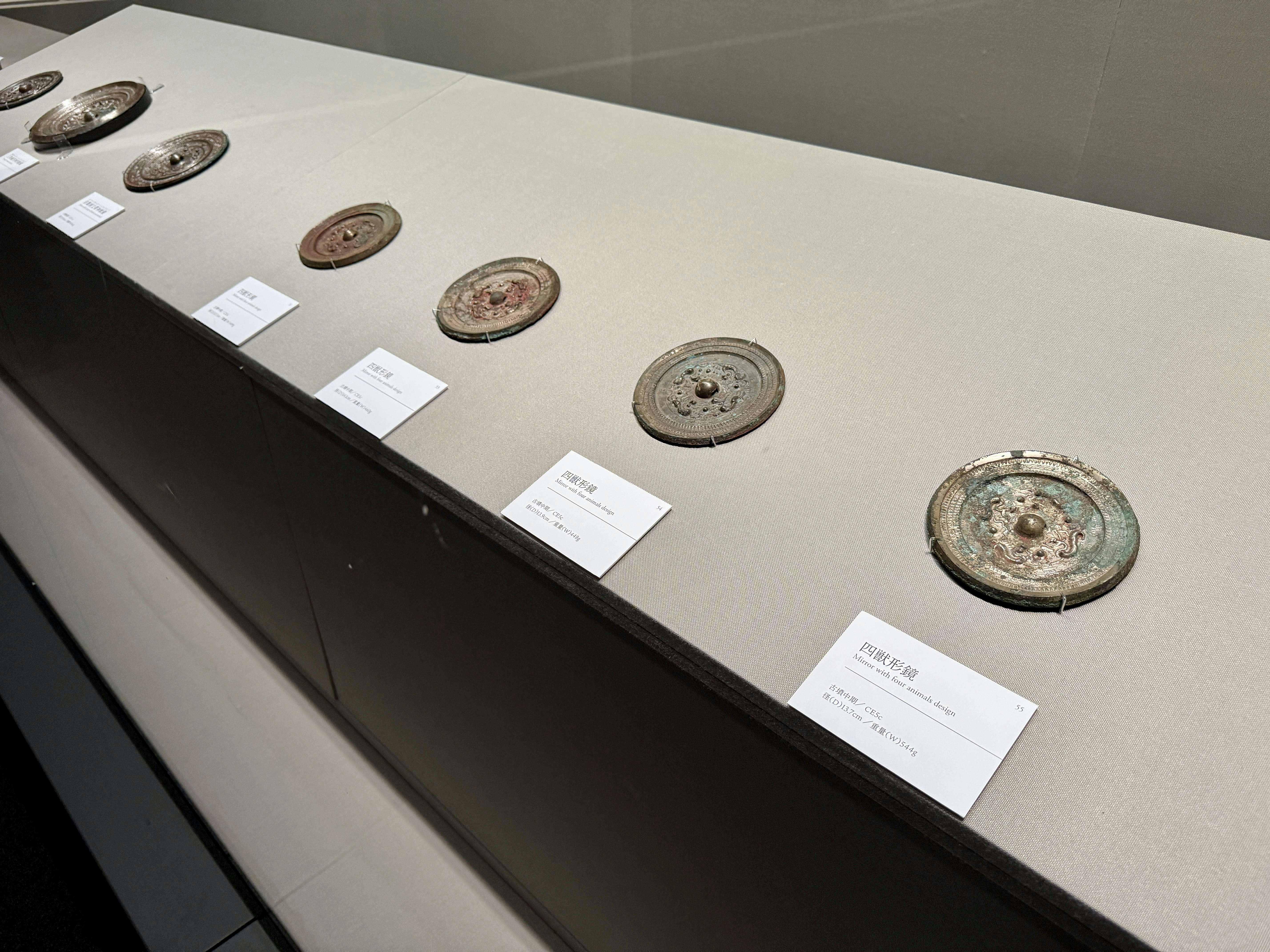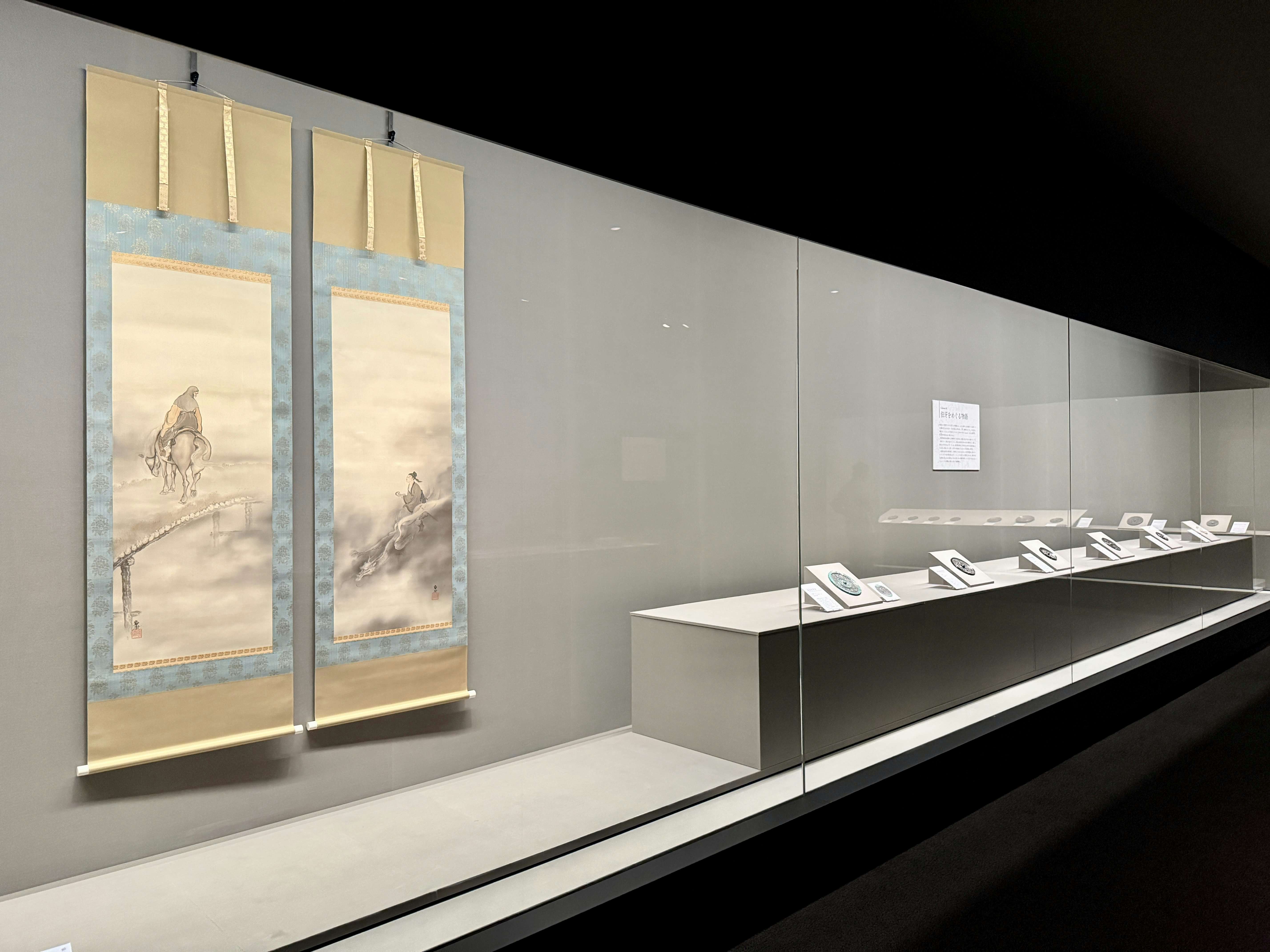 第4章の展示風景より、右は《月兎八稜鏡》(中国・中唐) 所蔵=泉屋博古館