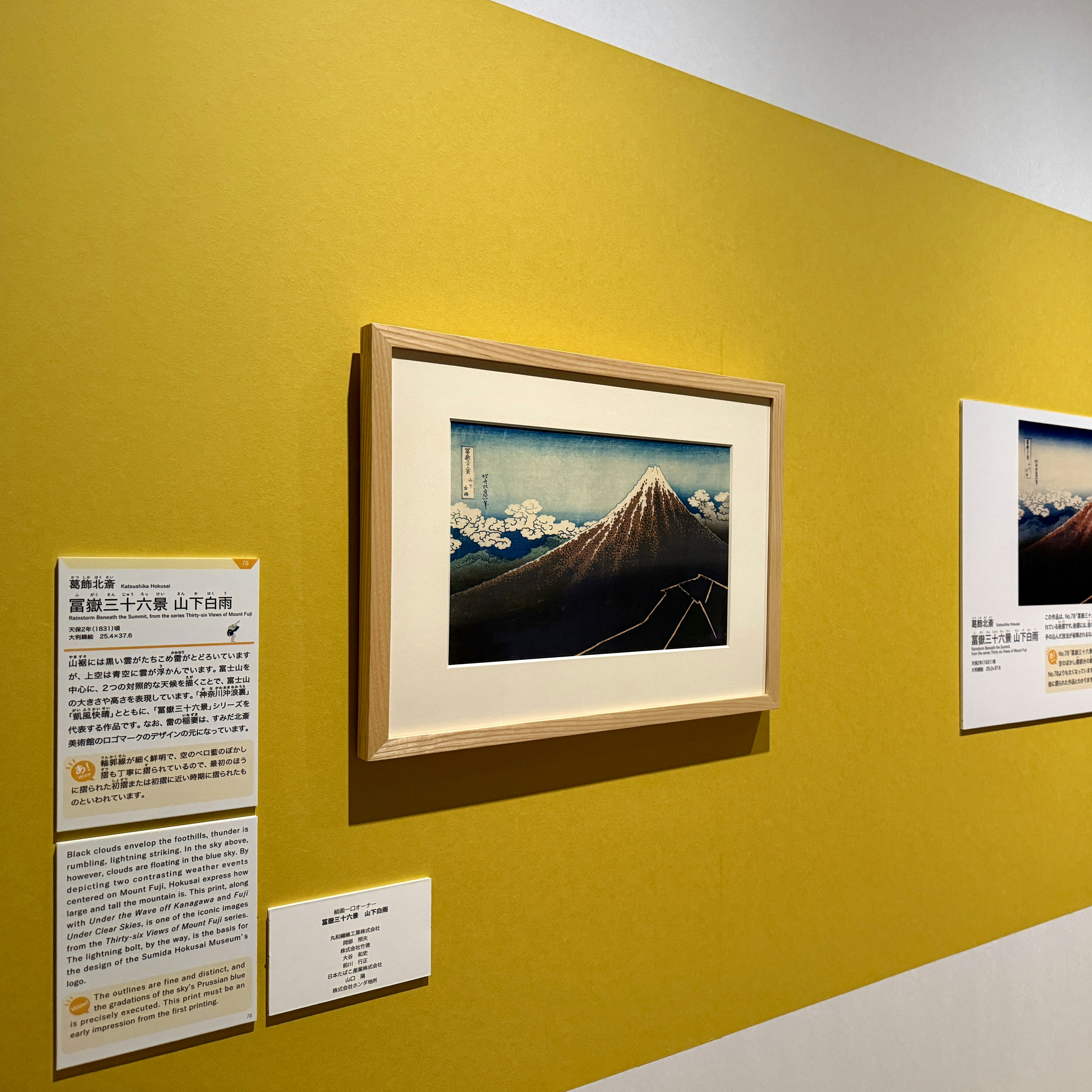 続く「違いをみつける」部分では、浮世絵版画特有の“初摺”と“後摺”の違いに焦点を当てた展示が展開される。代表作《冨嶽三十六景 山下白雨》の初摺・後摺・変わり図の3点が比較展示され、版木の劣化や摺りの技術、さらには販売戦略に伴う改変など、版画ならではの特徴が浮き彫りにされている。