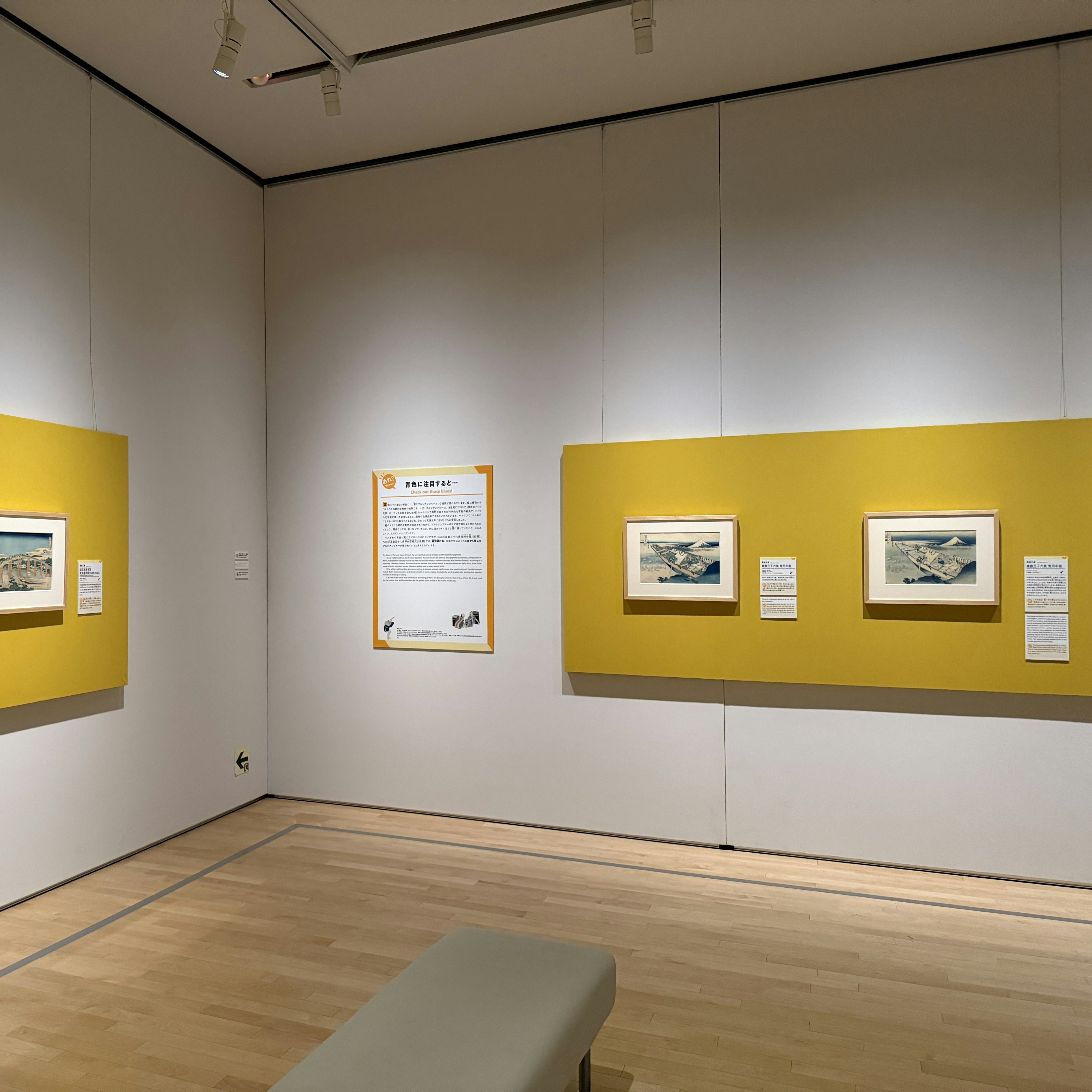 第2章「『あ!』っと、みつけて、みえてくる!」では、鑑賞者が自らの目で作品の「共通点」や「違い」を見つけ、最終的にはそこから新たな視点が「みえてくる」体験へとつながる構成となっている。複数の作品を比較しながら、浮世絵版画ならではの表現や構図、摺の技法についてより深く理解を促す展示内容となっており、初めて浮世絵に触れる来館者にもわかりやすく構成されている。