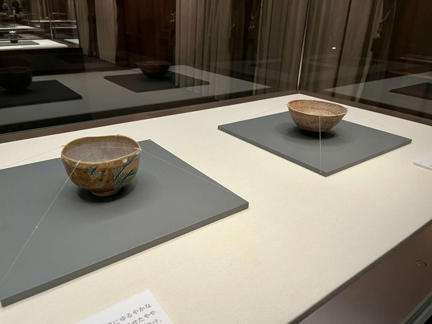 会場入口では南宋・元時代の銘品《青磁牡丹文不遊環耳付花入》が来場者を迎える。本展のテーマのうちのひとつ「花」を象徴するかのように、その胴には大きな牡丹の文様があしらわれており、柔らかな花びらの造形が印象的だ。腰に連なった蓮の花びらとも相まって、単色ながらも華やかな空気が器を包み込む。