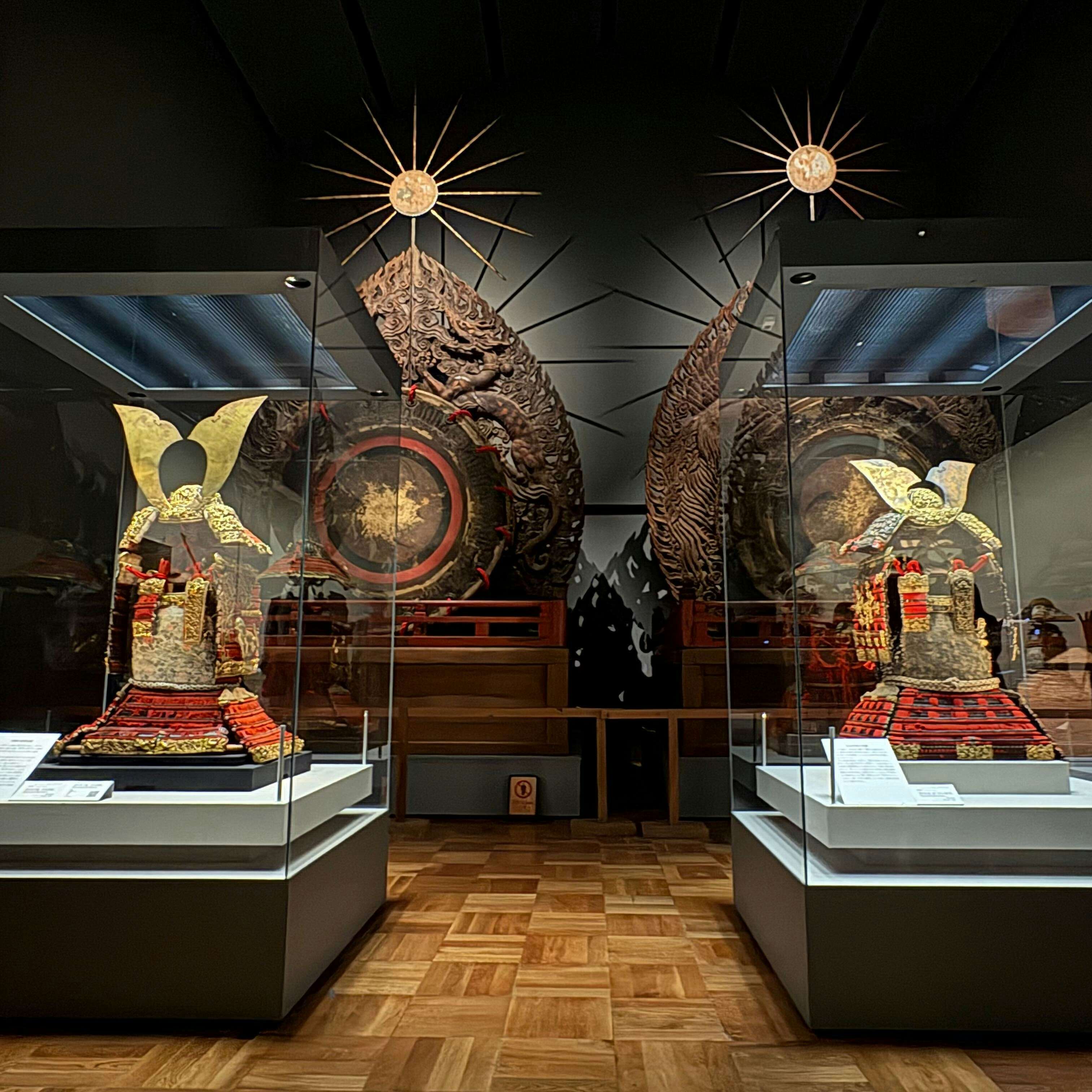 本展は、国宝指定された甲冑類18点中9点が一堂に会するという異例の展示となっている。なかでも、豪華な飾金物をあしらい、「国宝大鎧の双璧」として知られている二領の大鎧が史上初めて並列展示されるという、大変貴重な機会だ。
