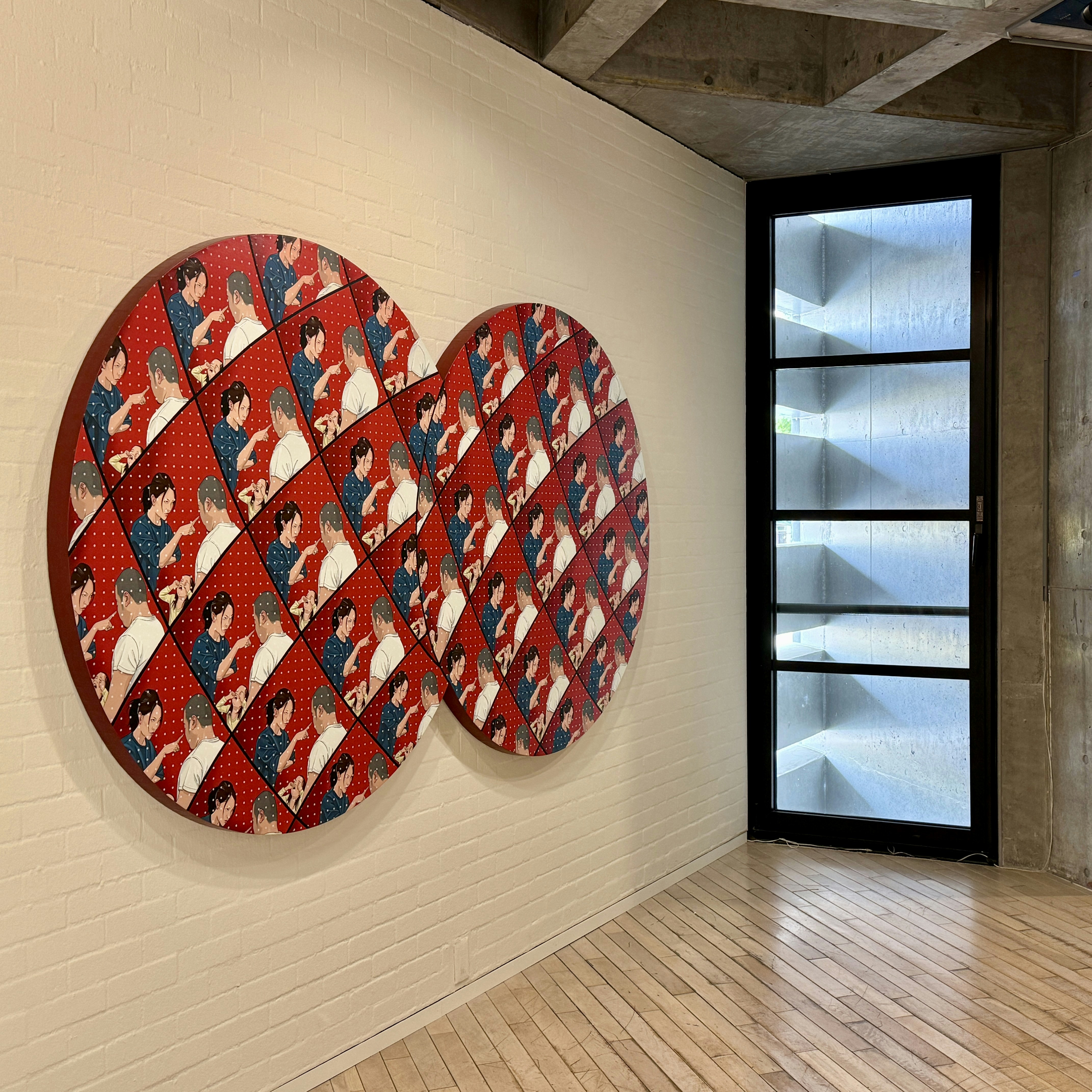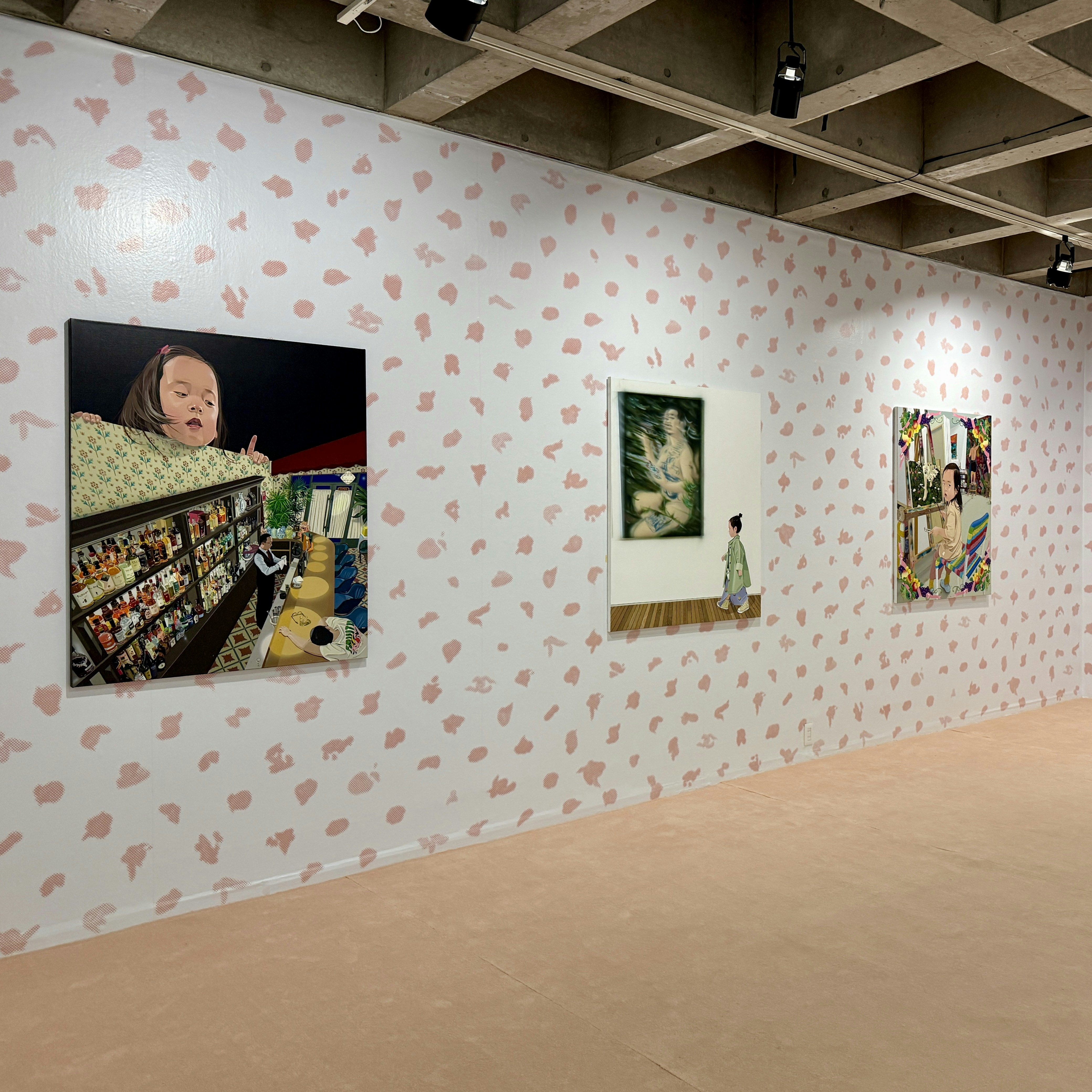 本展では、チェンが2022年から25年にかけて制作した新作絵画15点を中心に、高さ7メートルにおよぶ壁画やインスタレーション、ドキュメントなどが、サイトスペシフィックに構成された空間で展開されている。