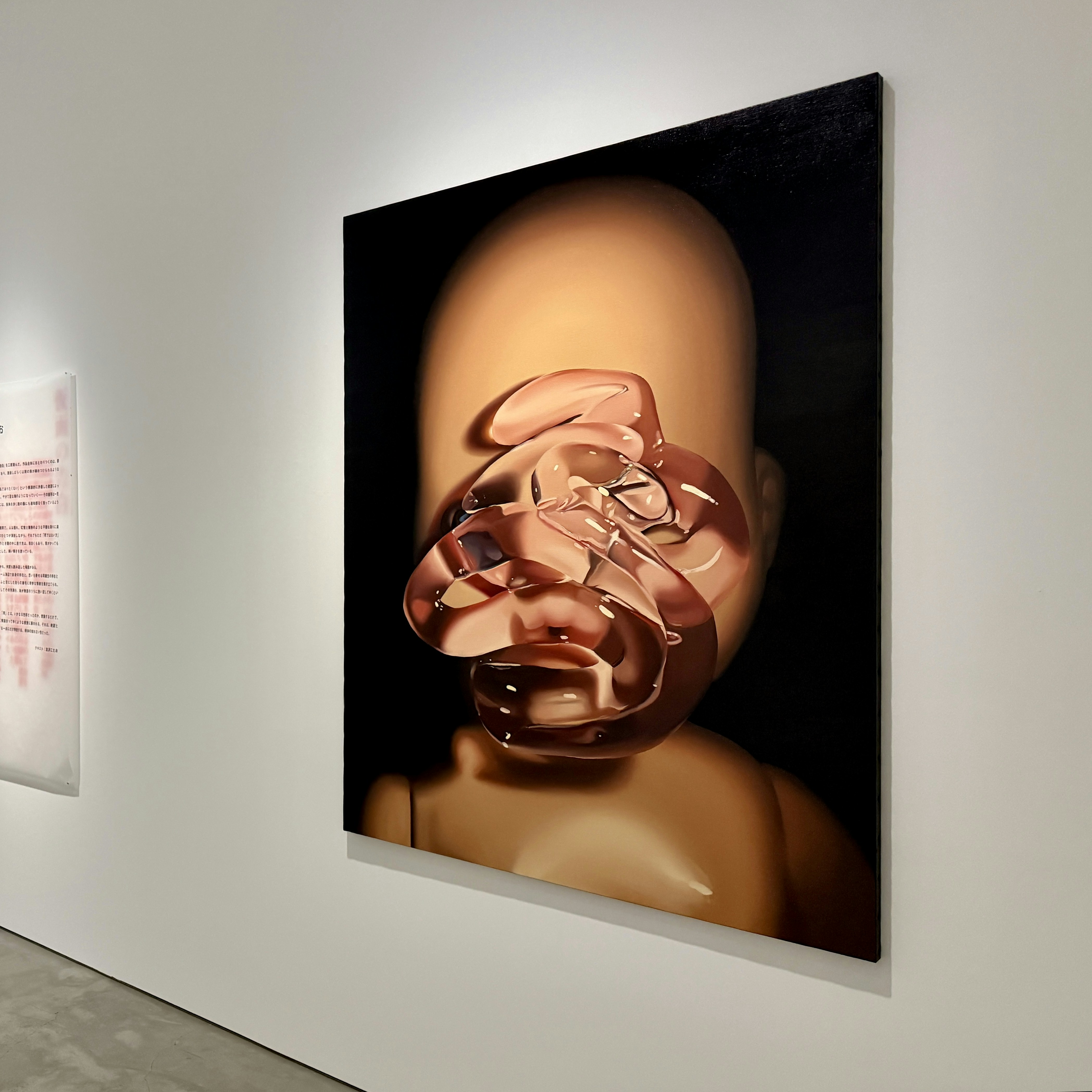 友沢こたおは、三島のデビュー作『仮面の告白』を主題に新作絵画を発表した。自身の身体を媒体とし、スライムや呼吸困難といった身体的感覚を通して「生きている」ことを描く友沢の表現は、三島が生涯格闘した肉体と魂の乖離に深く共鳴している。なかでも、三島が描いた思春期の海辺での葛藤──筋肉質な男性の身体に対する強い憧れと反応──は、友沢にとって「臓器に響くような」読書体験であったという。その記憶に向き合いながら制作された絵画は、文学と身体の交差点として強い印象を残す。