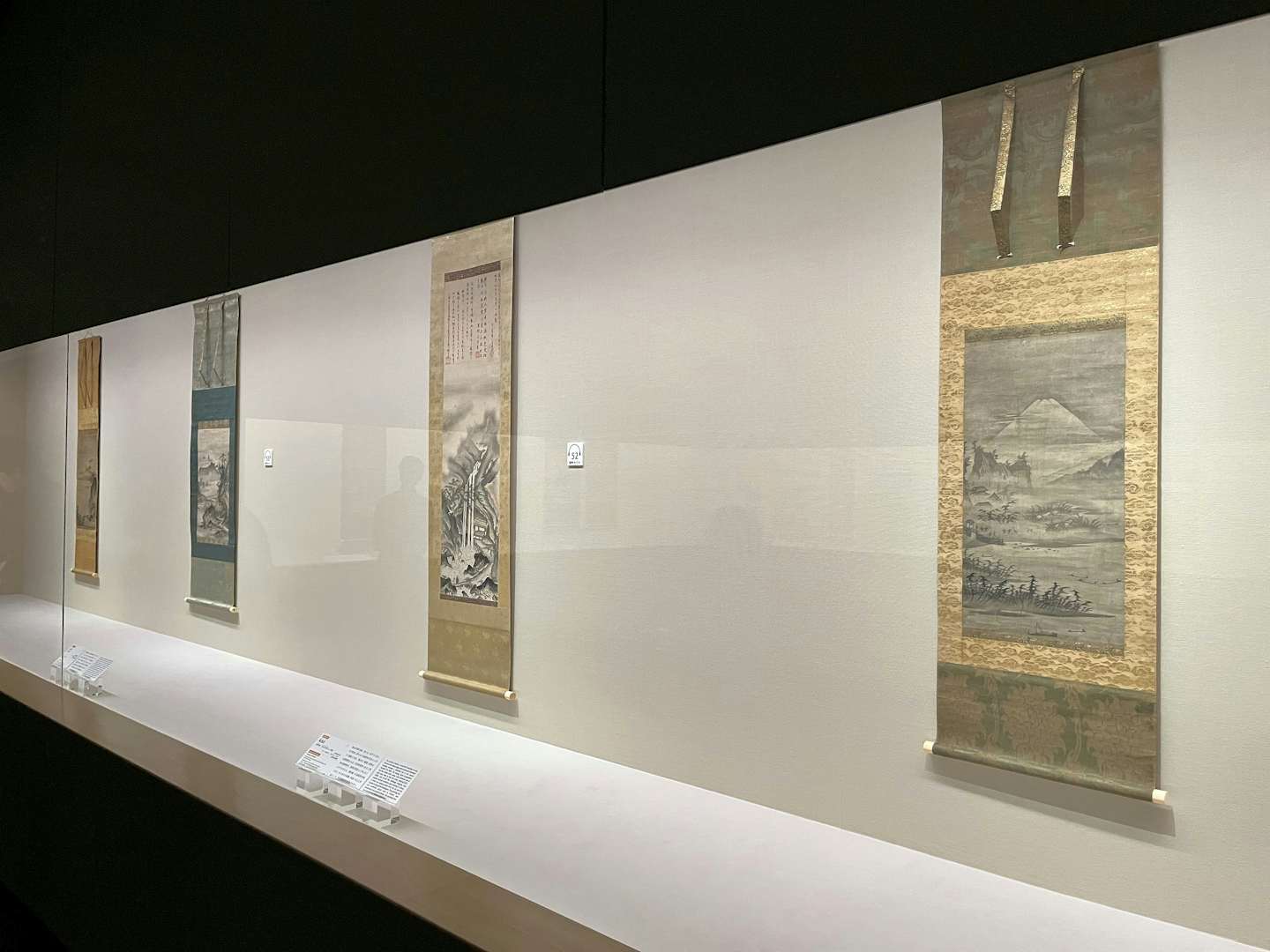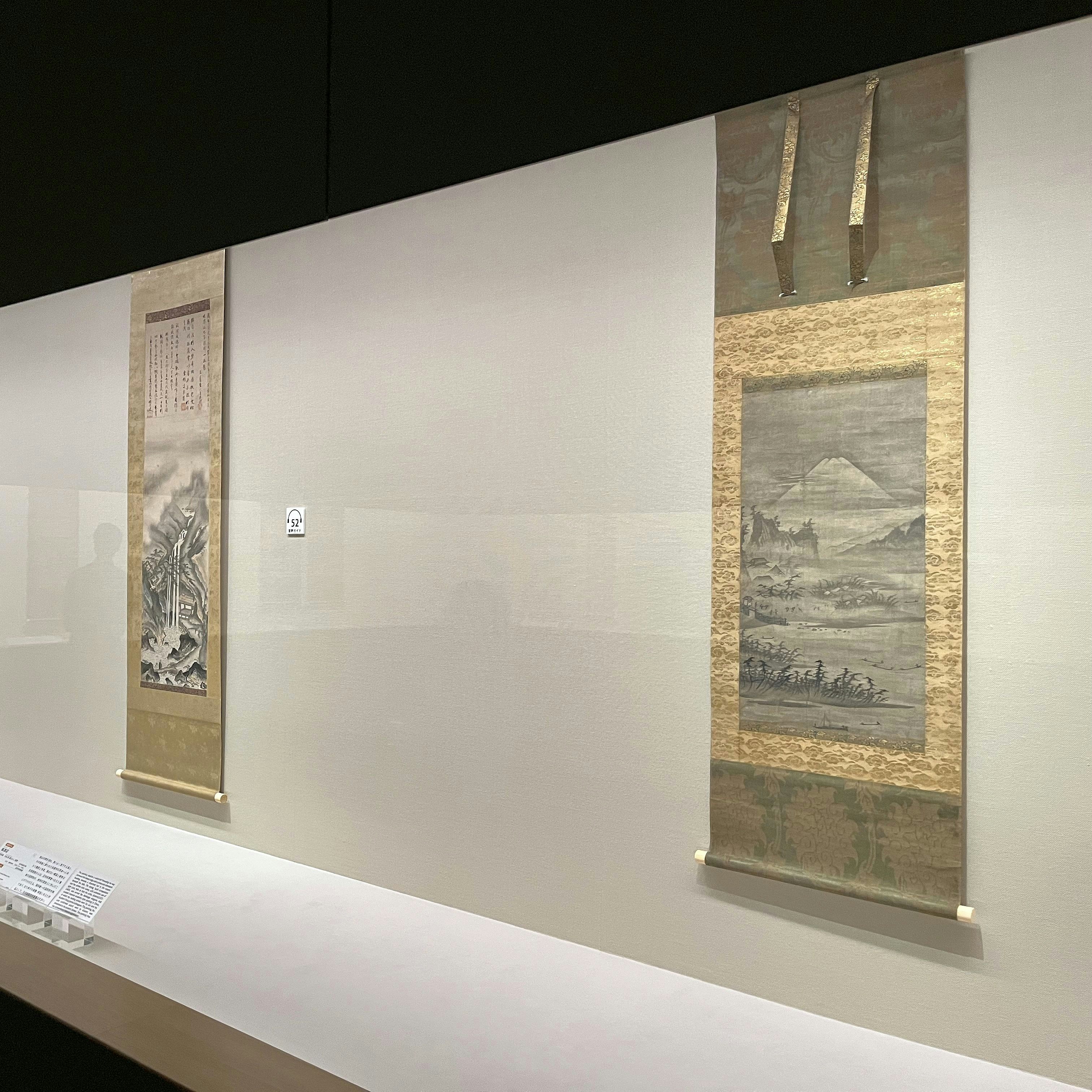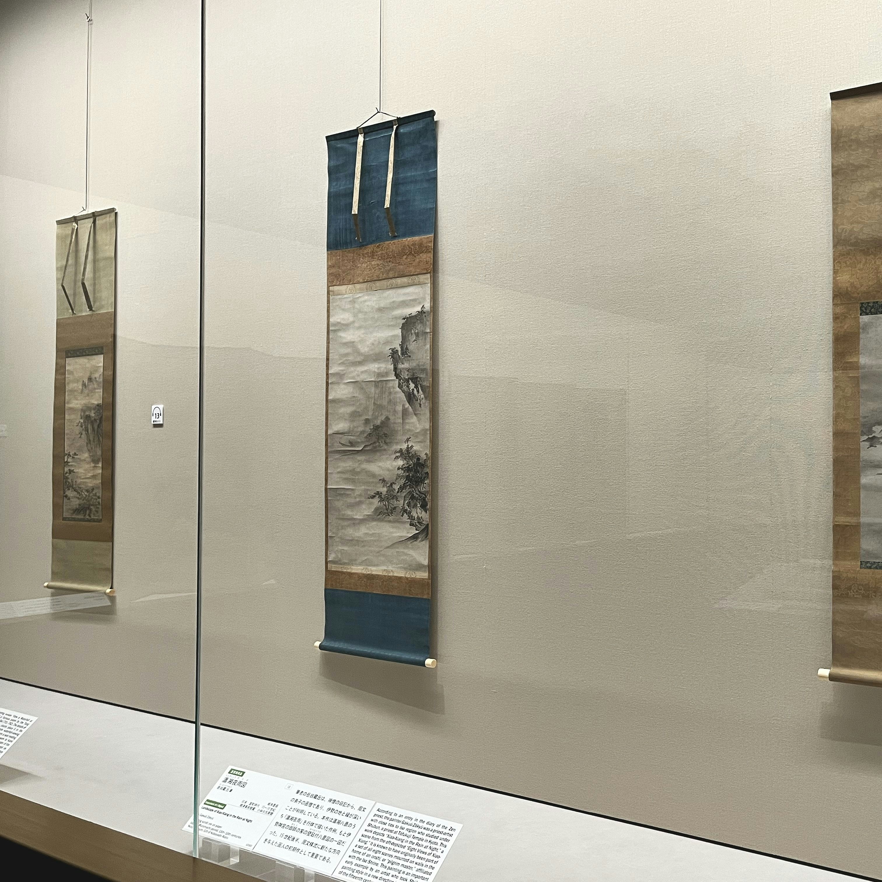 「周文とその弟子たち」展示風景より、手前は拙宗等楊 《山水図》(室町時代・15世紀、小林中氏寄贈、根津美術館蔵)