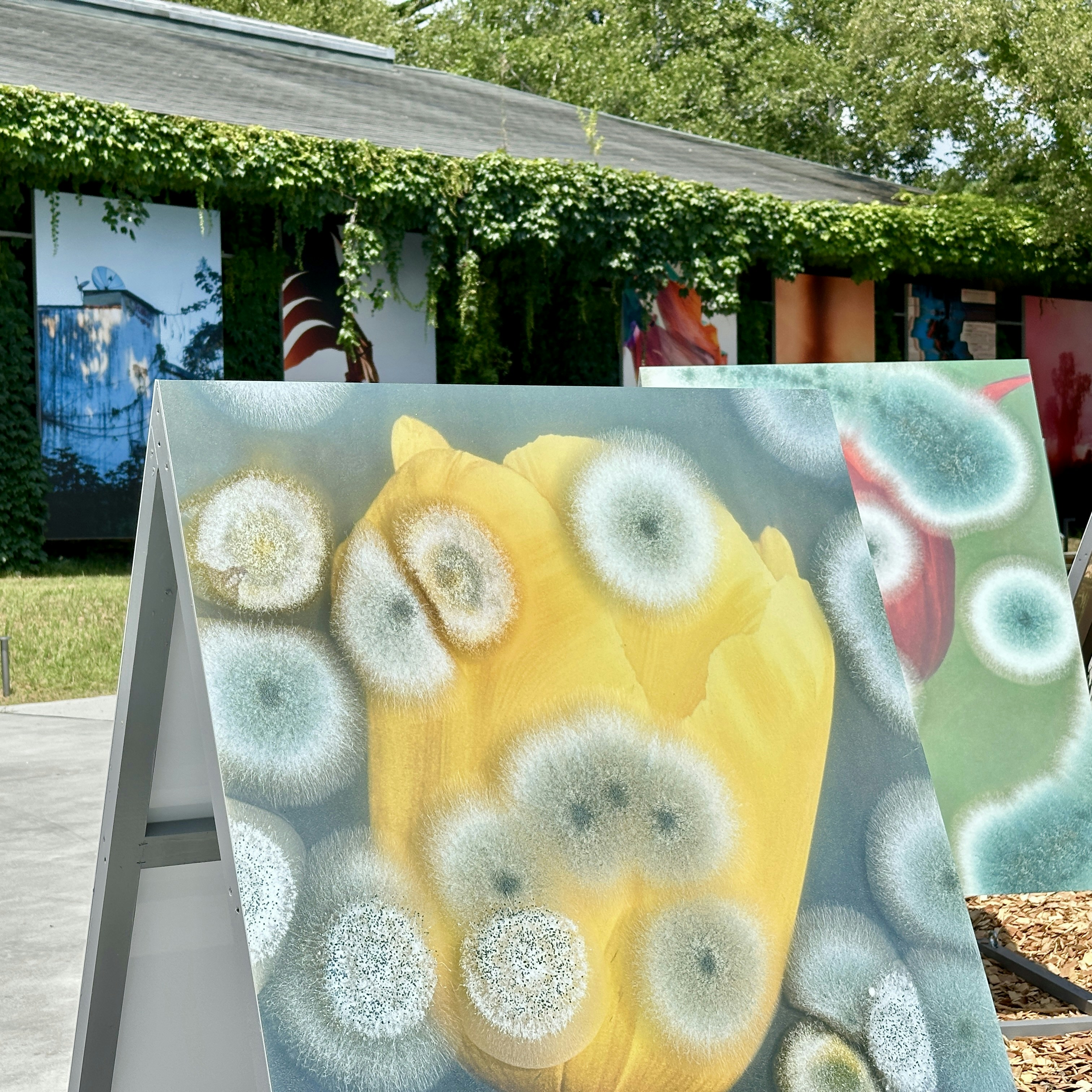 リサーチ型の作品で知られるマレン・ジェレフは今回、公衆衛生学の研究者であるクラウス・ピヒラーと協働。2009年にオランダで「アスペルギルス・フミガータス」というカビの菌株が原因で数人が亡くなったケースを題材に《Too close to nice》を制作した。この菌はオランダの特産品であるチューリップの大量生産に関連するものであり、本作ではカビの姿をチューリップと重ね合わせ、美しい花が生まれる代償に脅威も同時に生まれるという事実を示している。