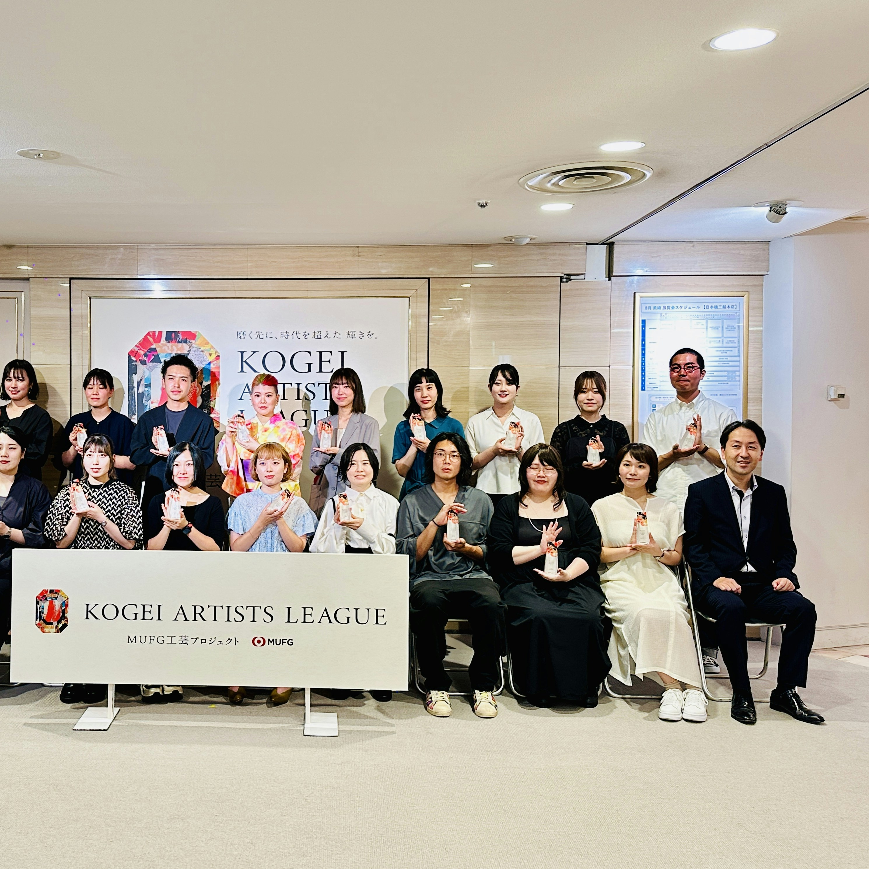 今回の「KOGEI ARTISTS LEAGUE」は同プロジェクトの一環であり、工芸作品のつくり手が作品発表・販売を行える機会が少ないという課題に対応するため、若手工芸作家の作品展示・販売機会等を創出。総合監修の秋元雄史・東京藝術大学名誉教授をはじめ、青木千絵(漆彫刻家/金沢美術工芸大学工芸科漆・木工コース准教授)、上出惠悟(画家・工芸家)、桑田卓郎(アーティスト)、佐々木類(美術家/ガラス作家)、須藤玲子(テキスタイルデザイナー)、舘鼻則孝(現代美術家)、四代田辺竹雲斎(竹工芸家/Artist)、田山貴紘(kanakeno)、中川周士(中川木工芸比良工房)、中田真裕(漆芸作家)、中村弘峰(人形師)、細尾真孝(株式会社細尾)、牟田陽日(陶芸家/美術作家/九谷焼作家)ら、工芸のカテゴリーを横断して世界で活躍する13名がサポーターとして選考に参加し、22名のファイナリストが決定した。