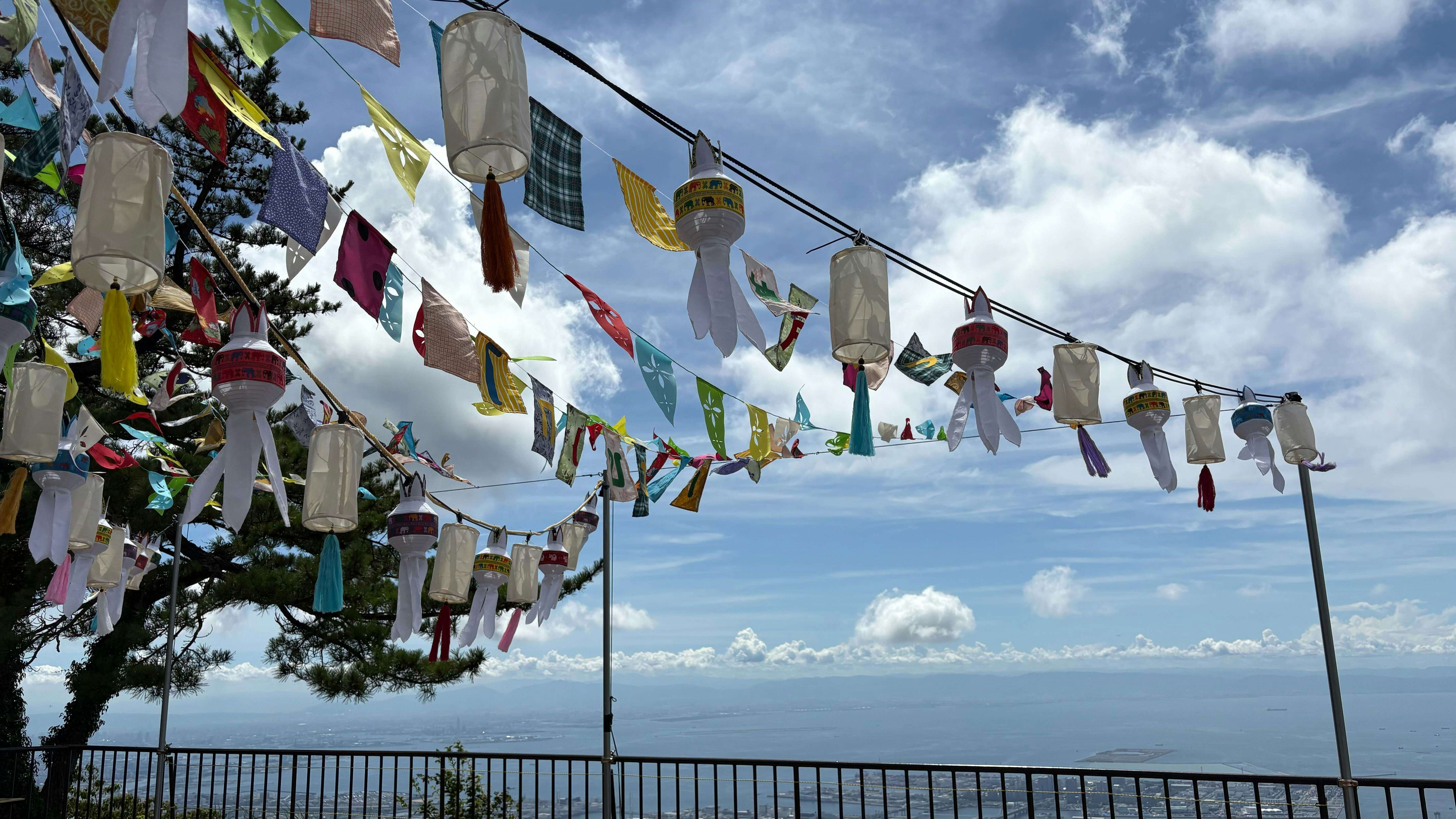 展示風景より、ナウィン・ラワンチャイクン+ナウィン・プロダクションが行うワークショップ「あなたの『ワーラーの旗』をつくろう!」の旗がなびく様子