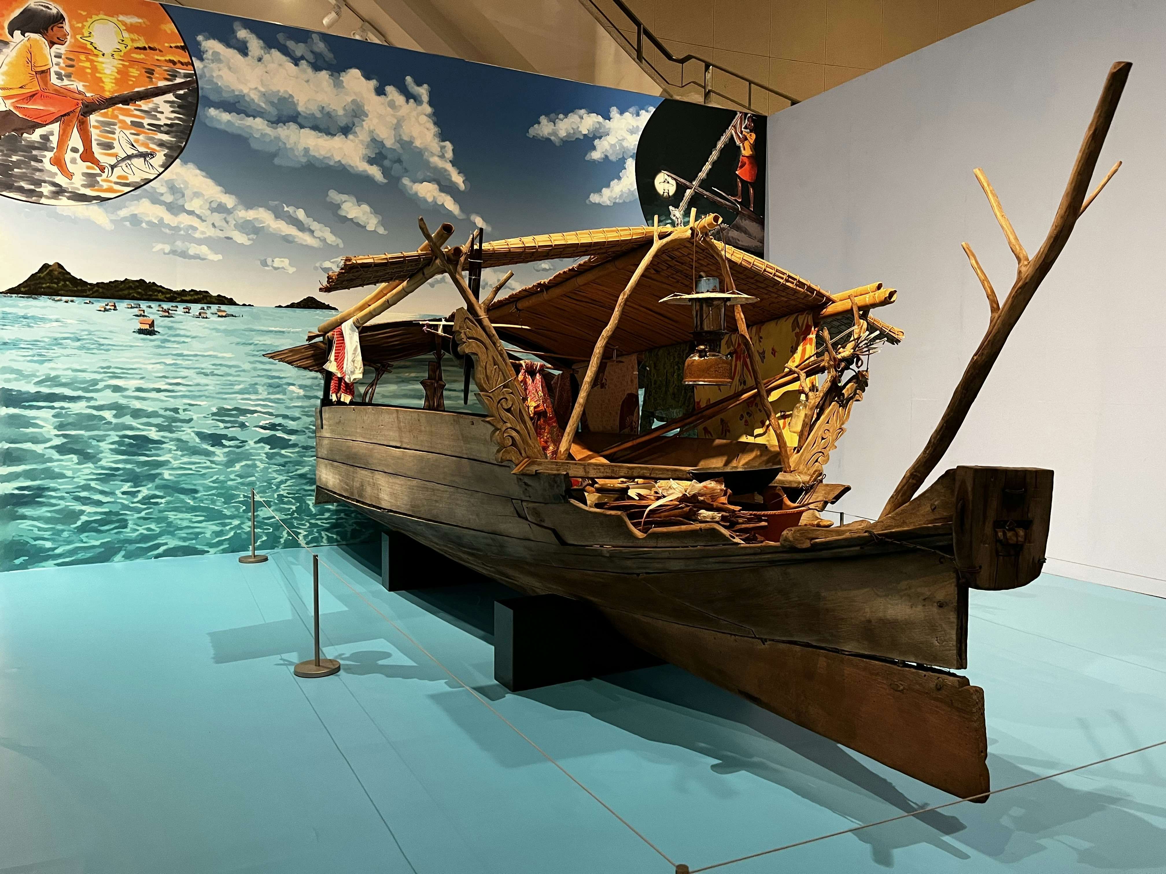 第4章「南洋圏の舟」展示風景より、サマ・バジャウ民族の家船(半分)
