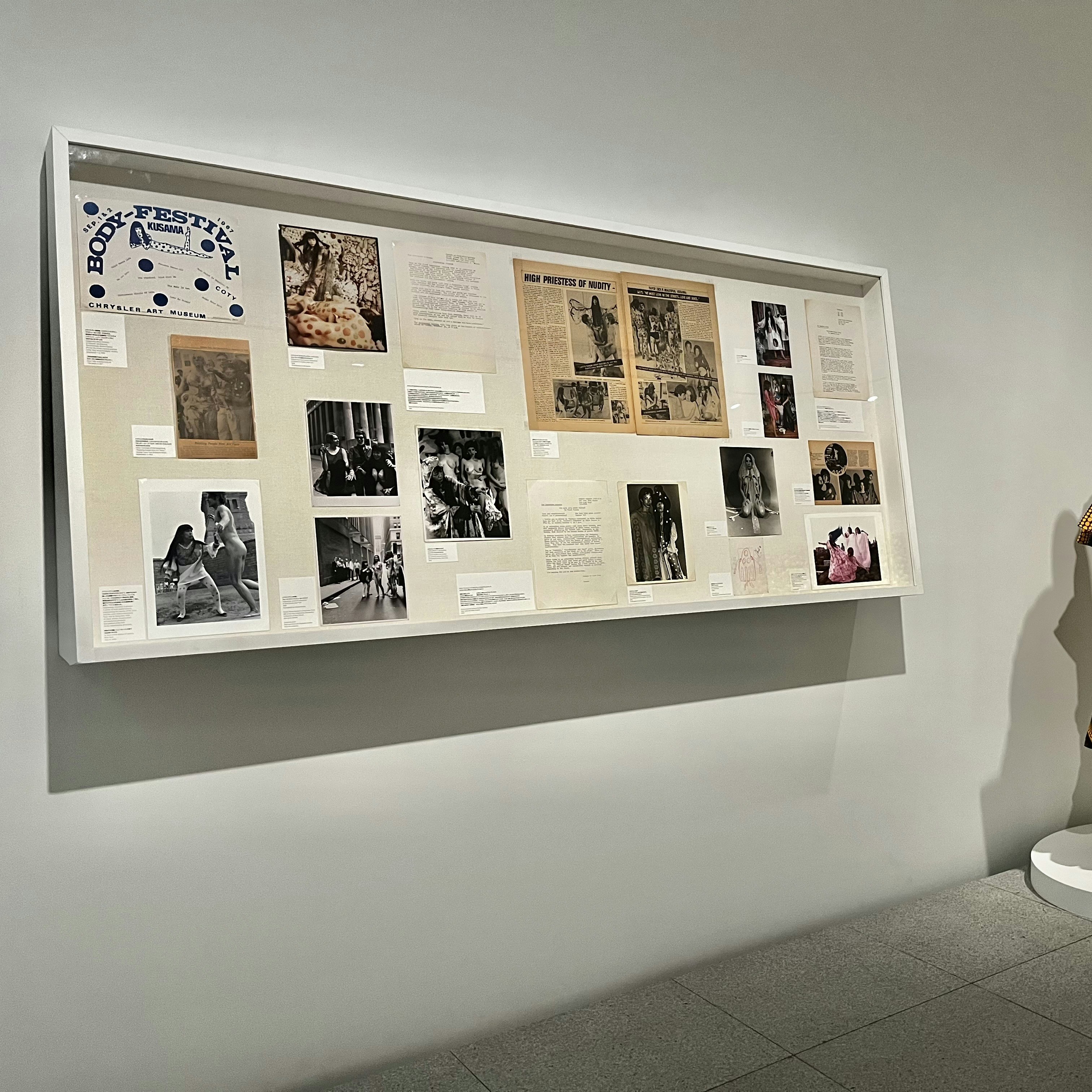 展示風景より、1960年代後半のヌード・パフォーマンスとファッションを紹介するドキュメンテーション (C) YAYOI KUSAMA