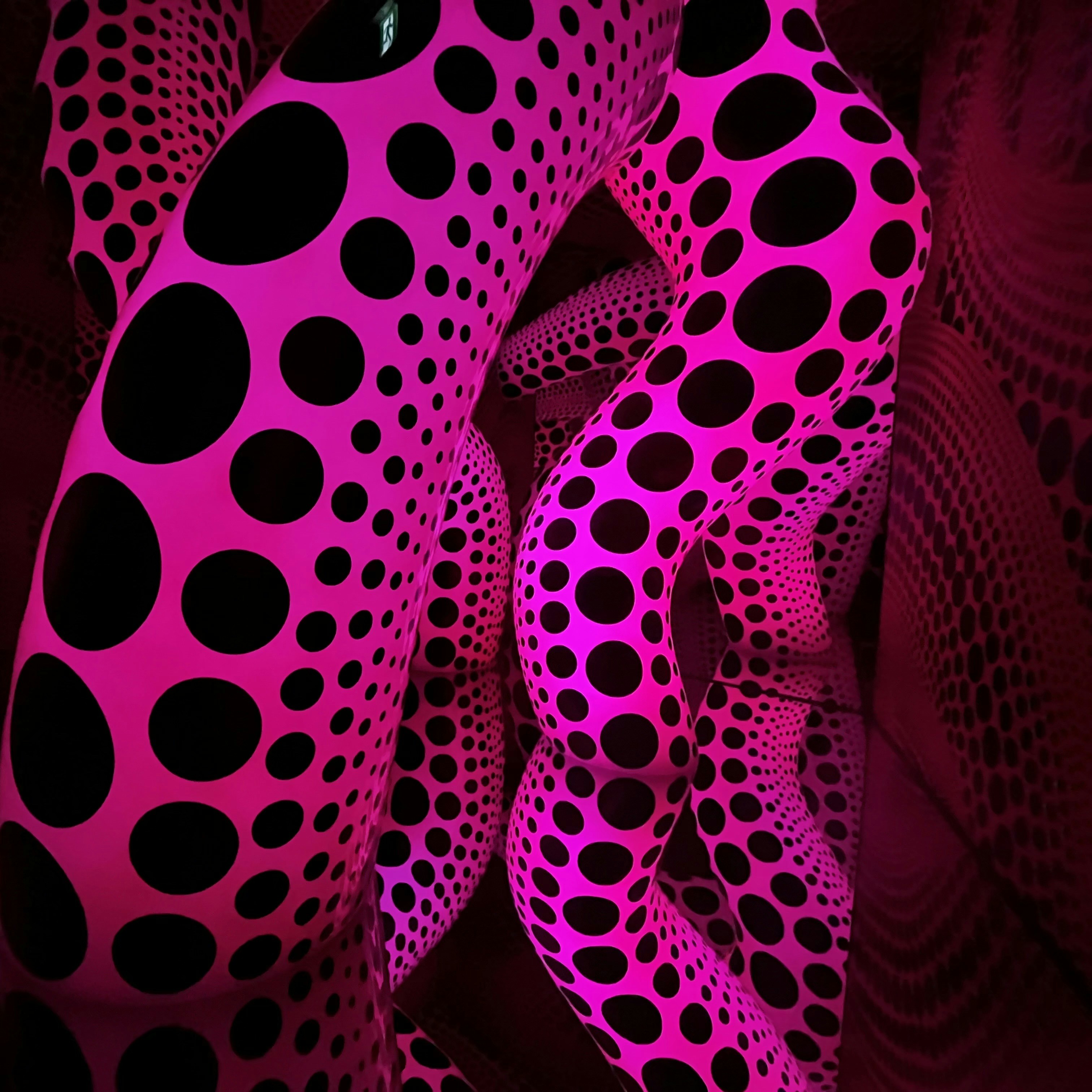 4階では、ミラールームを用いた体験型インスタレーション作品《決められた幻の水玉は 天国へ与えられた 私への最大の贈り物でした》(2021)が世界初公開されている。草間作品の特徴的な水玉模様が施された触手は、ミラールームのなかでどこまでも広がり続けるかのように見える。トラウマの克服として制作され続けた男性器のソフト・スカルプチュアは、草間作品の代表的なモチーフであり、近作においてもさらなる展開を遂げていることがうかがえる。