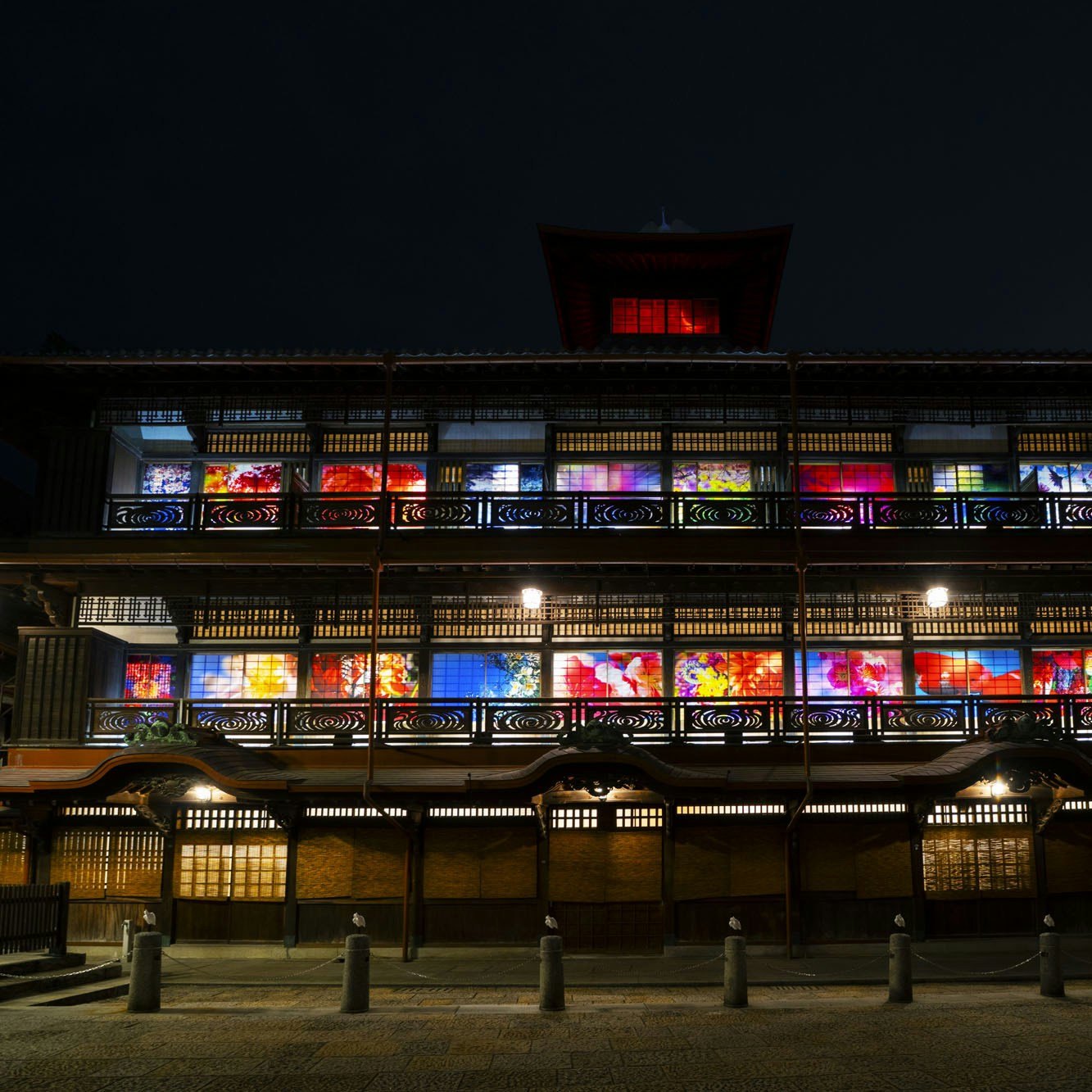 愛媛県・道後温泉がアートプロジェクトを始めたのは2014年。その後、もっとも回数を重ね、ともにアートプロジェクトを行なってきたのが蜷川実花だ。蜷川と道後との取り組みは2015年、2018年、2021年に続き4回目。2021年からは延長を重ね約2年8ヶ月間にわたり、道後温泉別館 飛鳥乃湯泉中庭で作品を展開した。