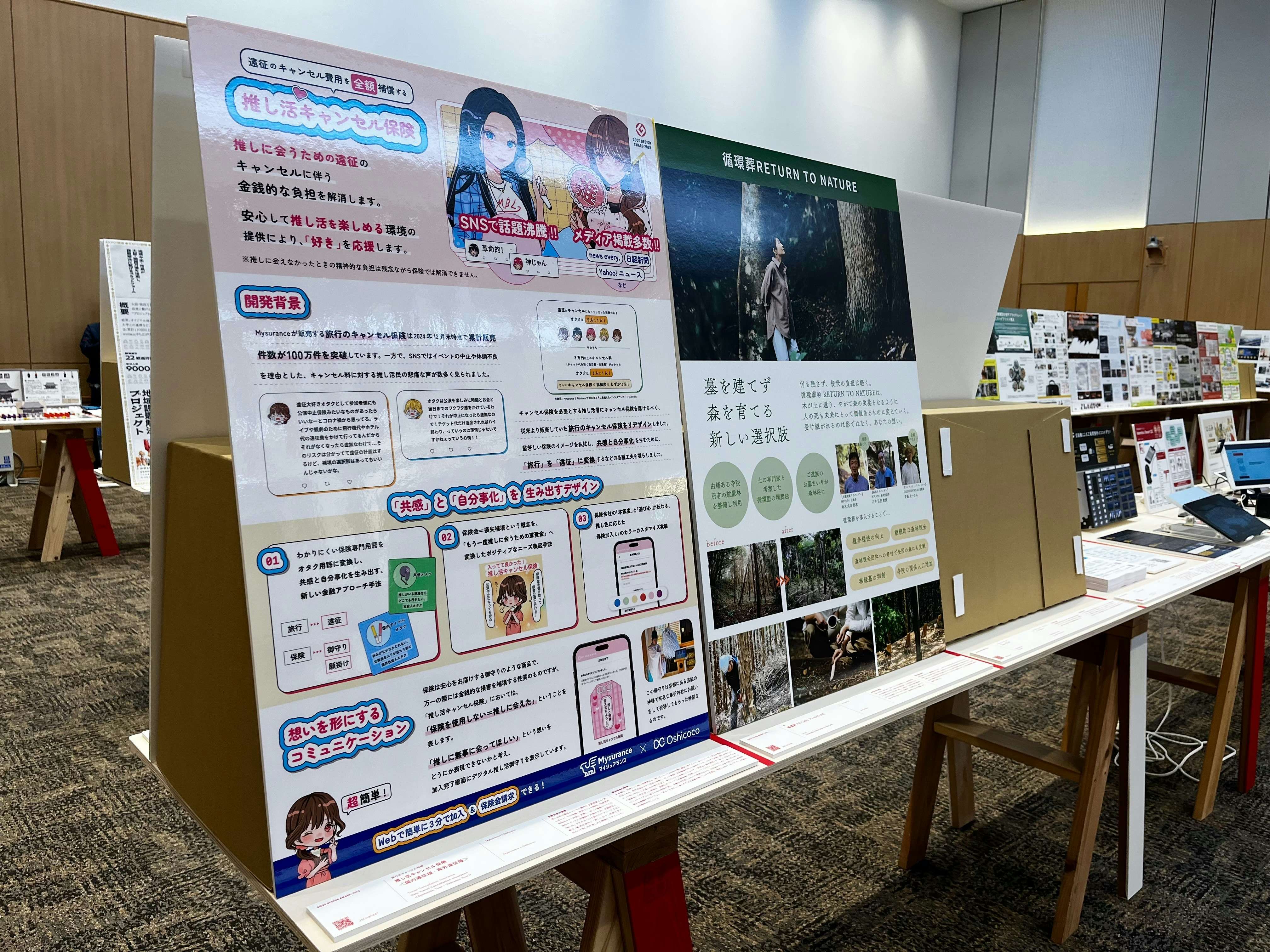 東京ミッドタウン地下1階ホールA 展示風景より、「推し活キャンセル保険 <国内遠征版・海外遠征版>」