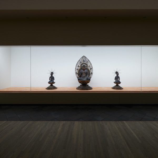 規制の多い設えの仕様など、不自由は多い。そんななか、紙でつくられた畳や屋久杉を用いて免震機能を備えた台座を一から設計。そして黒漆喰を施した壁で空間を仕切って展示ガラスの存在を限りなく消すというシンプルな解決法により、作品と鑑賞者の距離を、時間的にも空間的にも一気に縮めることに成功した。鑑賞者は漆黒の闇の中で、中世・近世の人々の眼差しと息遣いを、古物を介して追体験することができるのだ。それは杉本の写真作品を前にしたときに味わう感覚とも通じるものがある。古美術蒐集家であり、建築家であり写真家である杉本でこそ実現しえた空間であると言えよう。