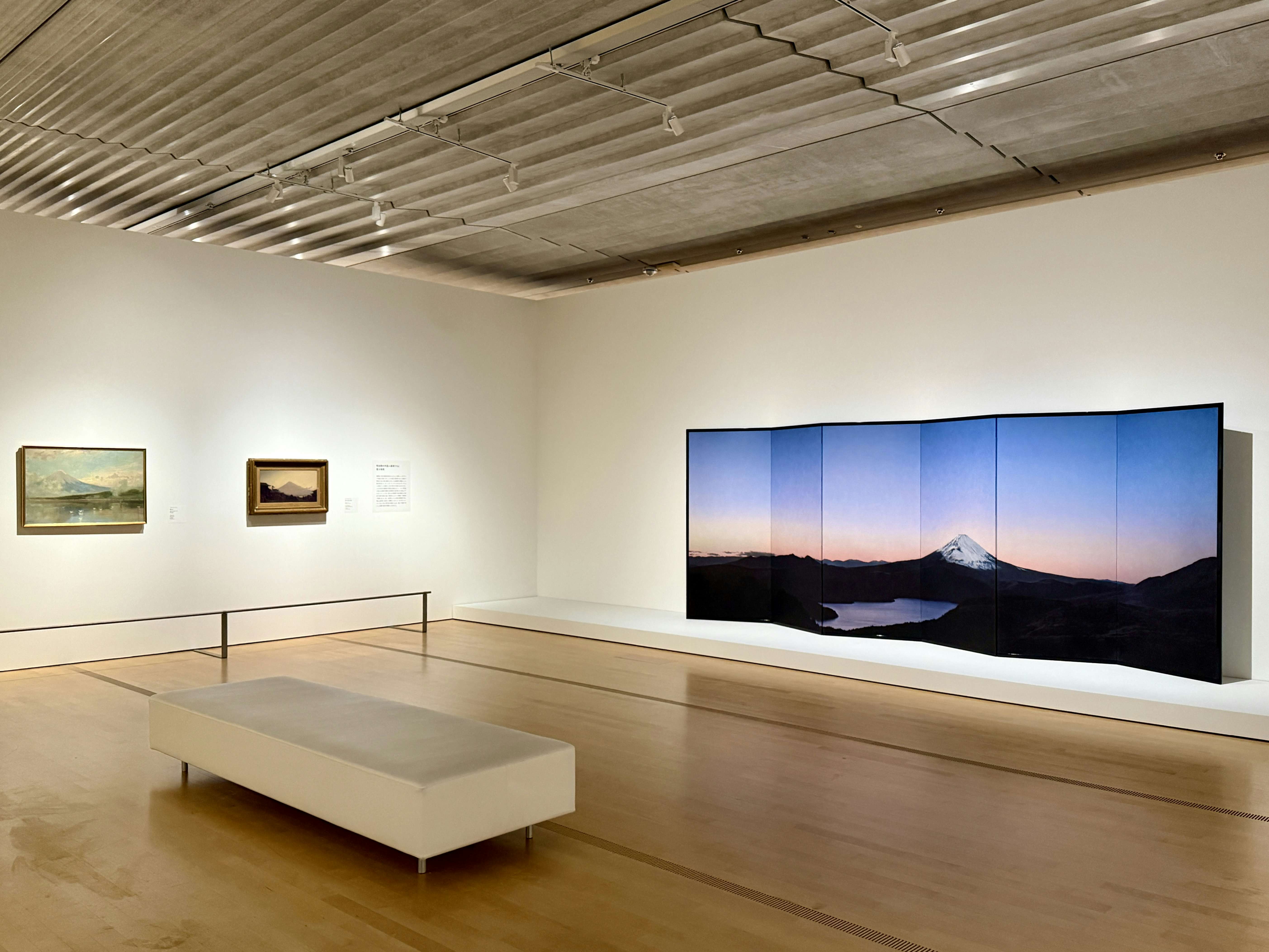 展示風景より、右は杉本博司《富士図屏風、大観山》(2024)