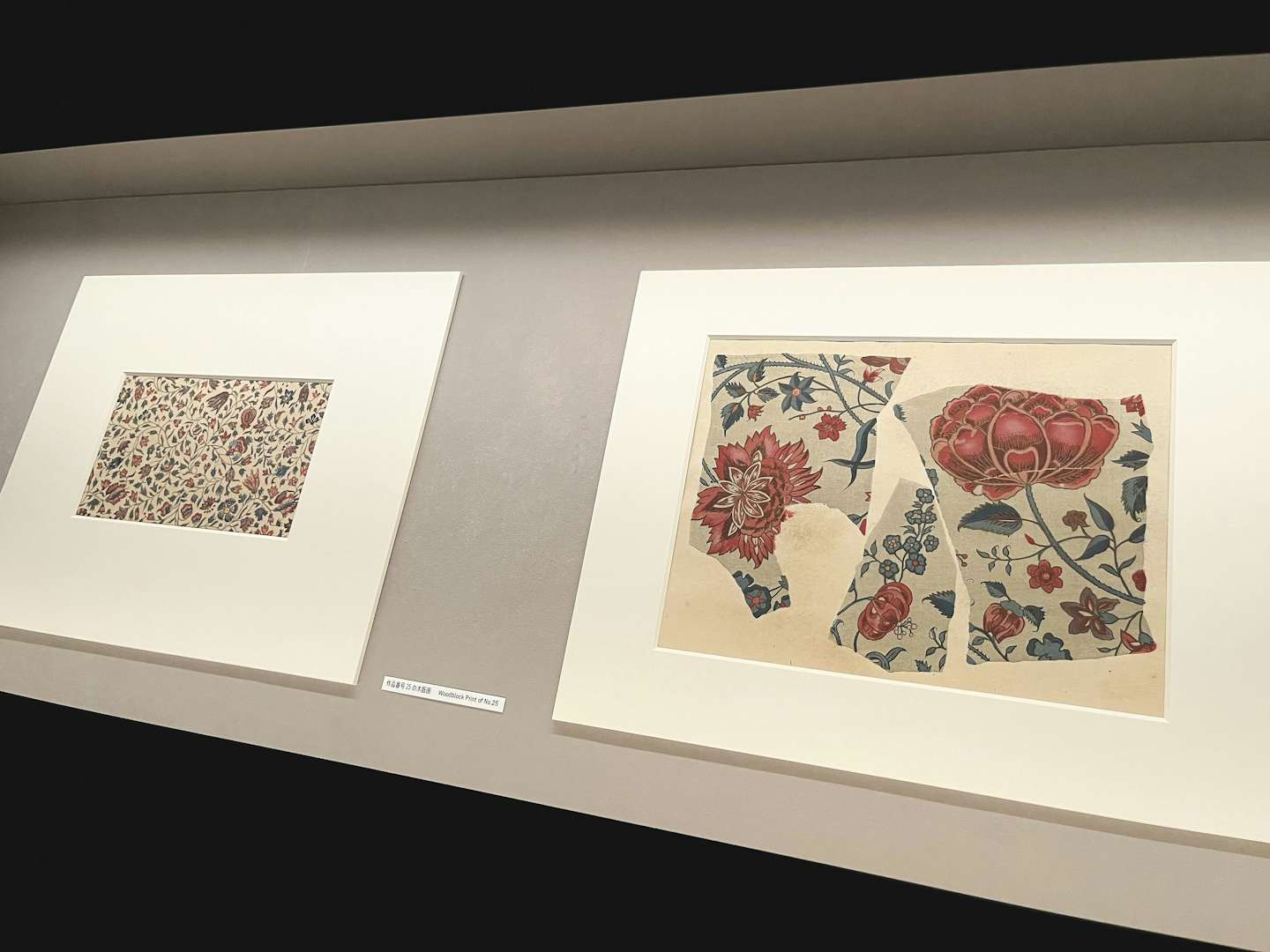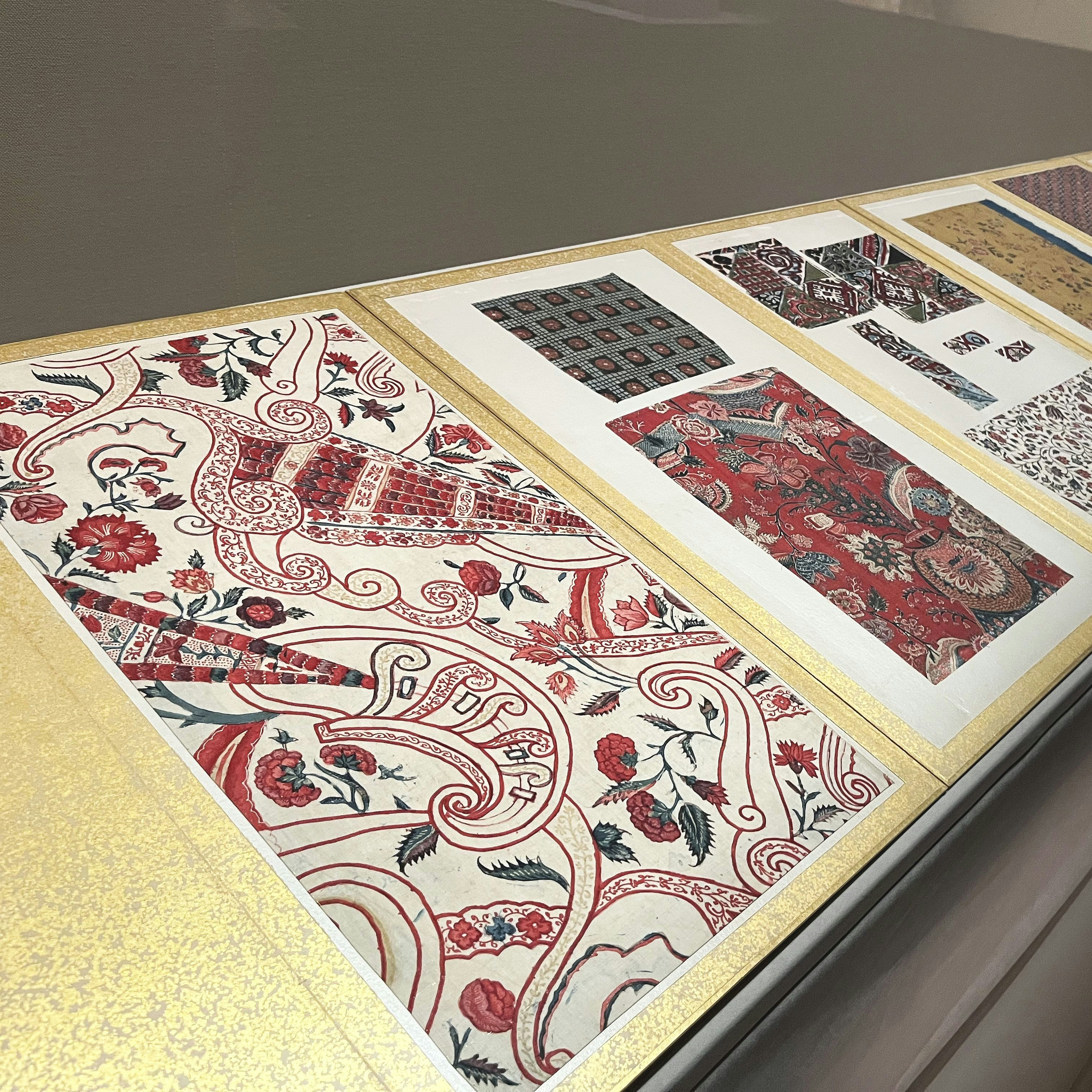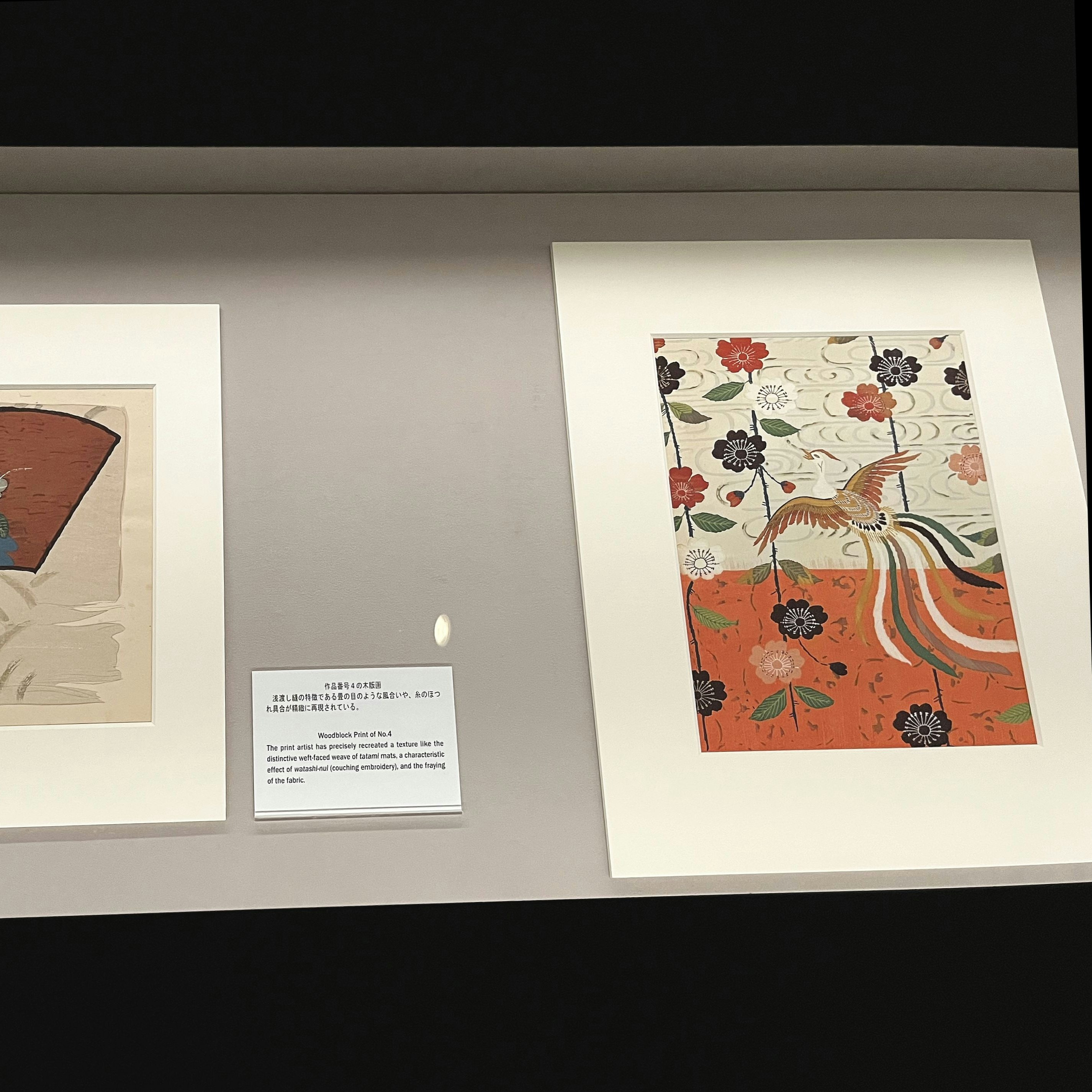 拡大された図案の木版画は、布・糸のほつれや、織や刺繍の糸の1本1本までが細密に写し取られ、どのような技法を使っているか参考にできるほどの精巧な摺りになっている。