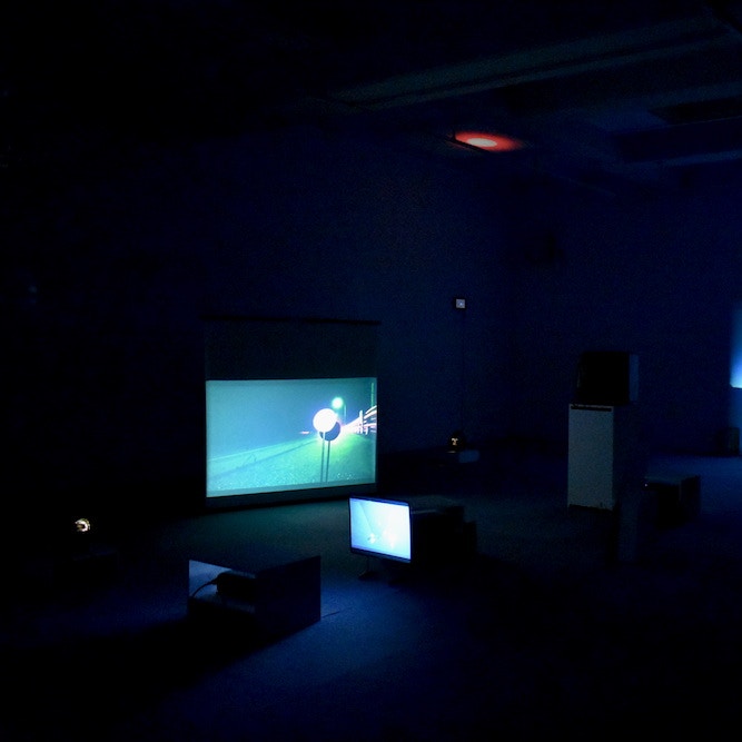 市原市内で撮影した夜の光が映し出されたモニターが点在する空間に、囁くような誰かの「子どもの頃の願いごと」が静かに響く。佐藤史治+原口寛子《星(近視と遠視)》では、地域の人々へのインタビューや小学校の文集から拾われた「誰かの願い」と、どこにでもあるけれどここにしかない市原の夜景が重なり合っている。