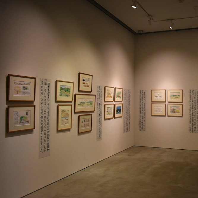 市原のアートを象徴する「市原湖畔美術館」がある高滝エリア。美術館では、『からすのパンやさん』(偕成社)をはじめとする600点以上の絵本を生み出した作家・かこさとしが、「小湊鐵道100歳企画 里山絵本展」として、芸術祭エリアを結ぶ小湊鐵道沿線を舞台にした旅絵本『出発進行!里山トロッコ列車』の原画を展示。