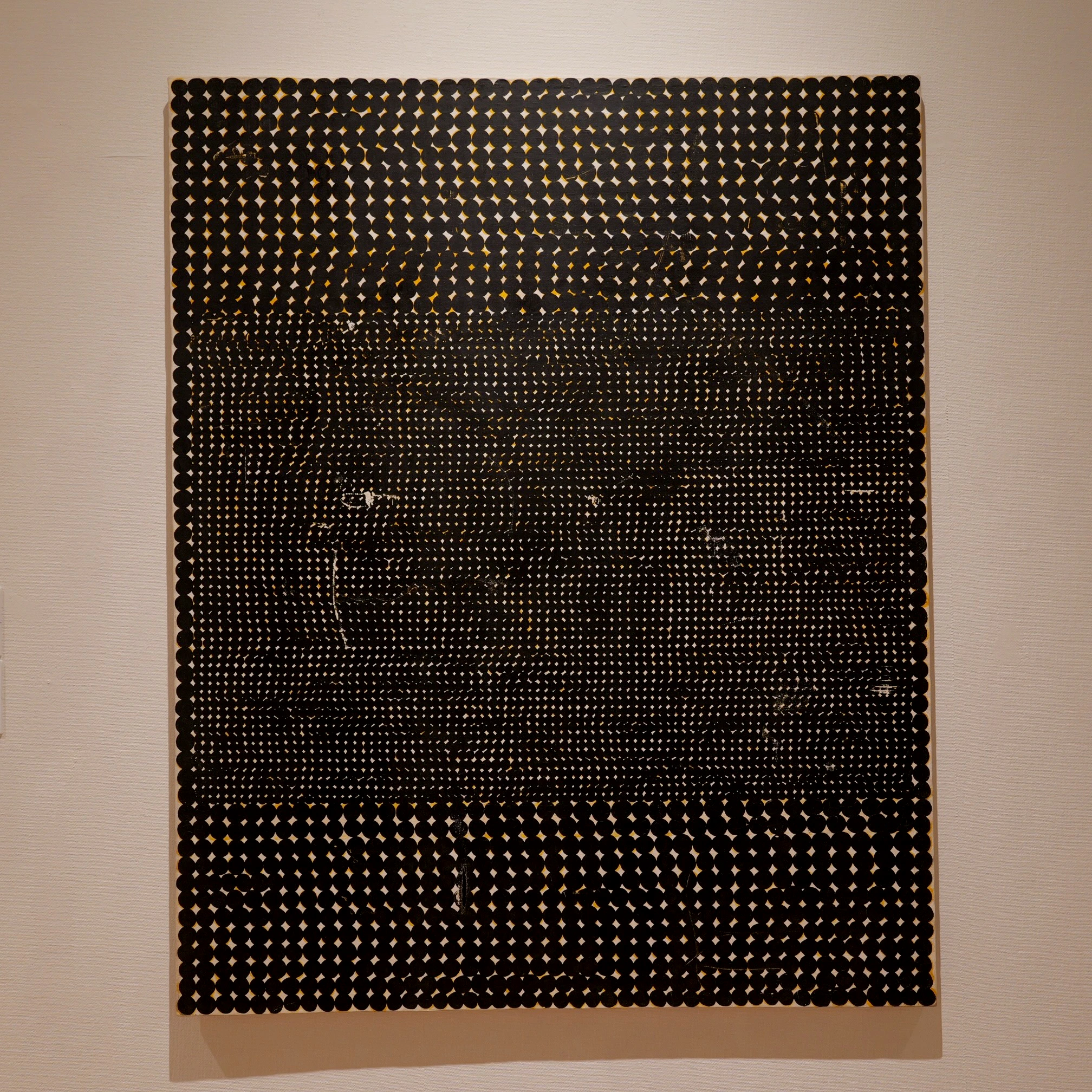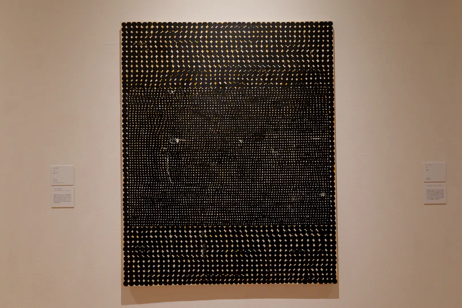 浜口の評価を決定づけたのが、実際の刃物を使用した絵画だ。浜口は第12回読売アンデパンダン展(1960)で刃物のシリーズを出展、評論家たちからも「反絵画」の実践として肯定的な評を受ける。会場で展示されている作品はサビが出てしまっているが、発表当初、キャンバスから突き出た刃物は輝いていたといい、第14回読売アンデパンダン展(1961)では同シリーズが危険であることを理由に出品を拒否されたこともうなづける。