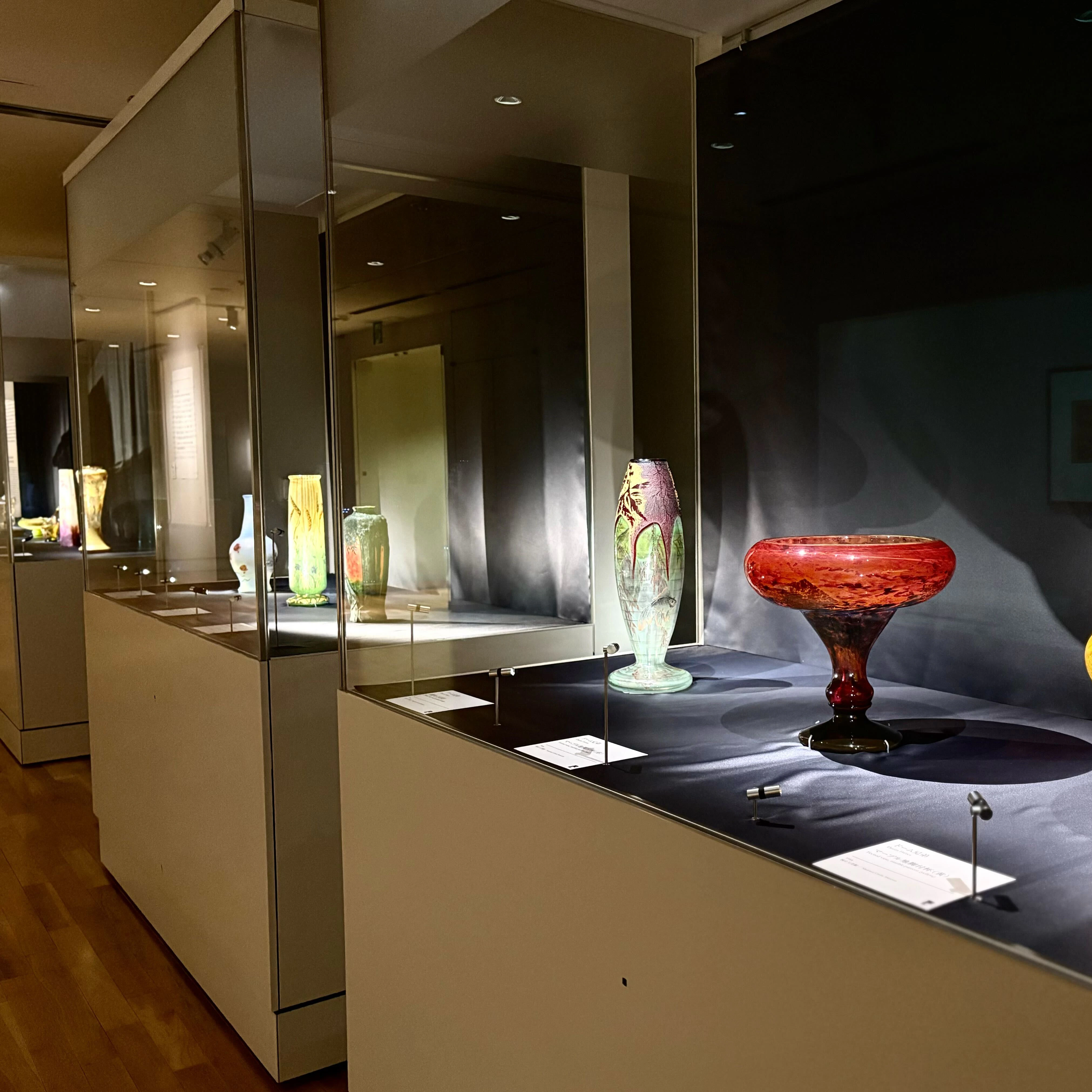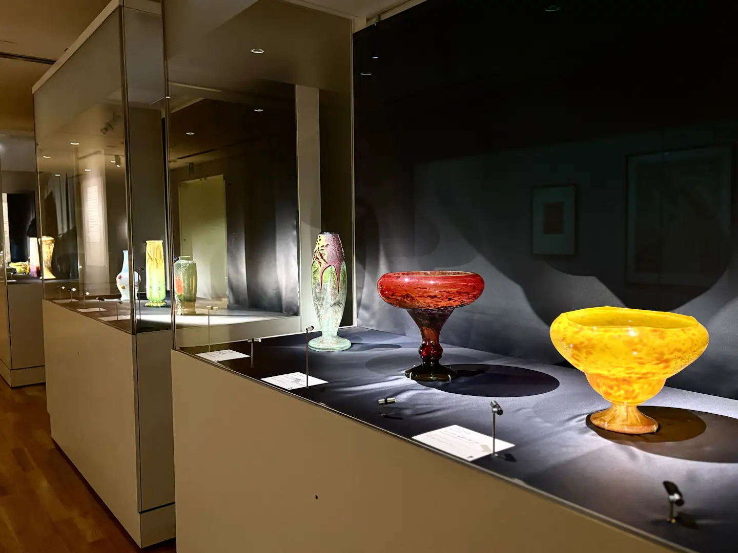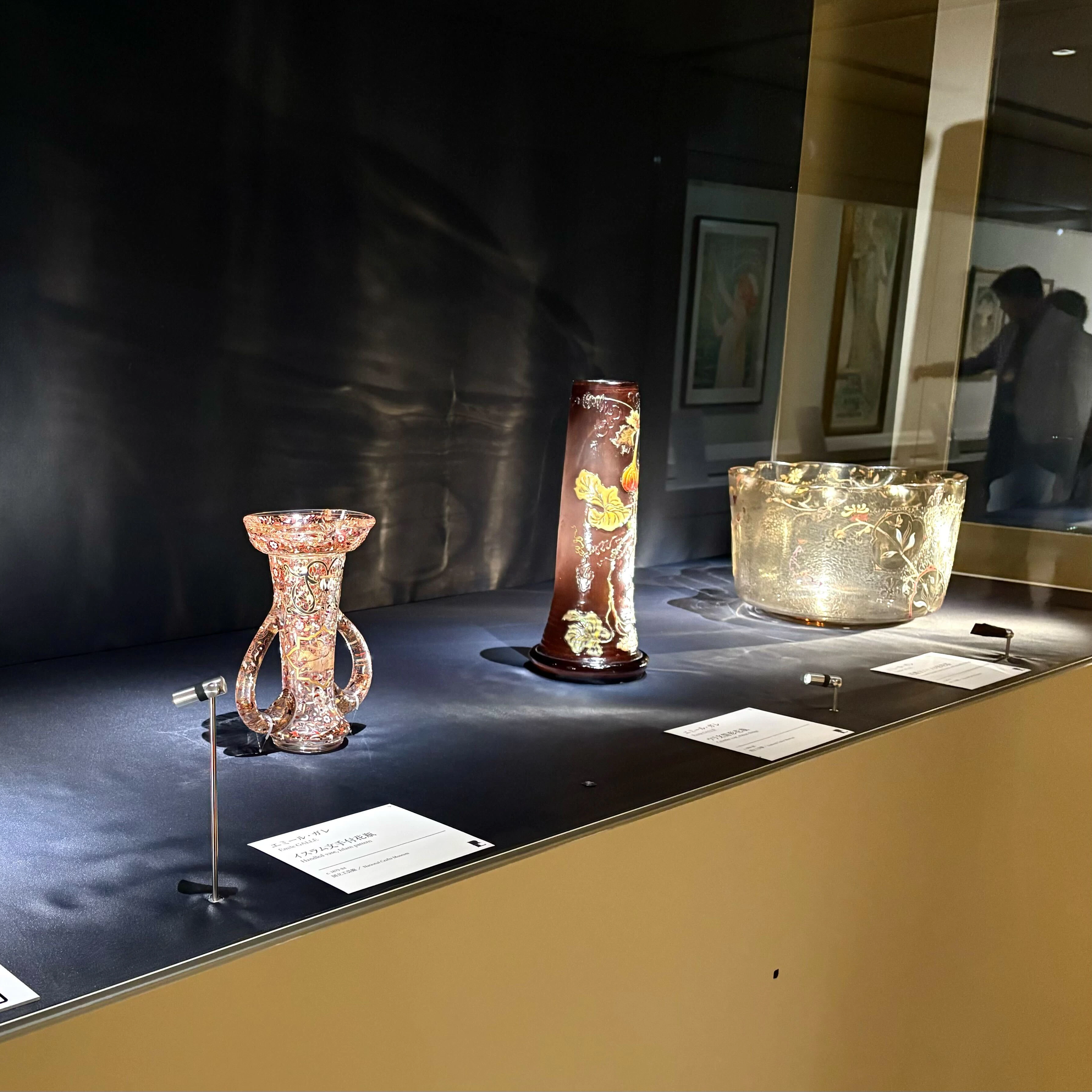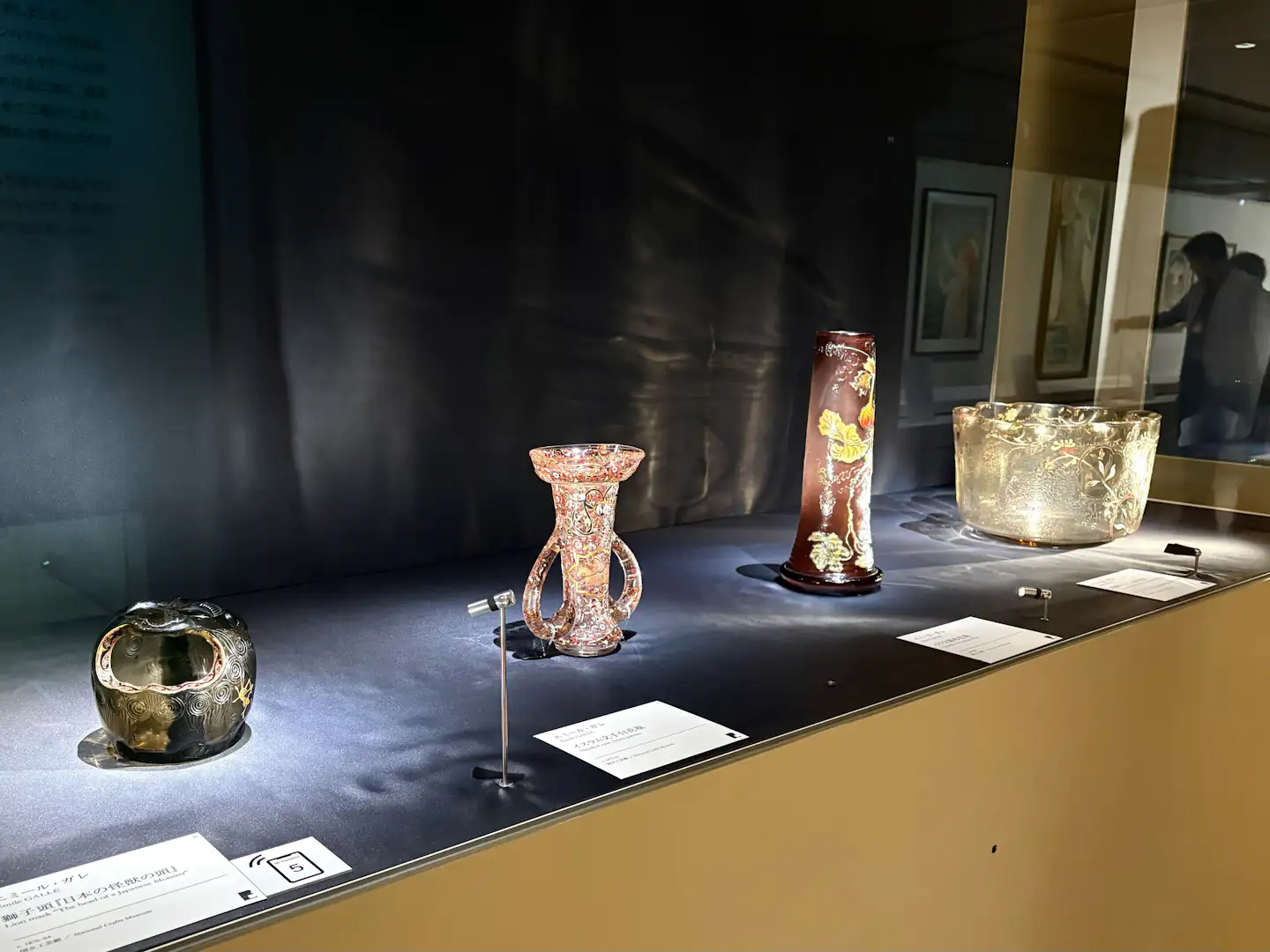 本展では、2023年に同館へ寄託された井内コレクションのラリック作品を中心に、ラリックに先駆けて活躍したエミール・ガレ(1846〜1904)やドーム兄弟(オーギュスト:1853〜1909、アントナン:1864〜1930)による、同時代の工芸・デザイン作品が、全120点紹介されている。また同館が所蔵する当時の陶磁器や食器、家具、ポスターなど、その時代を彩った作品が一堂に会し、フランスの装飾美術の世界を堪能できる機会となっている。