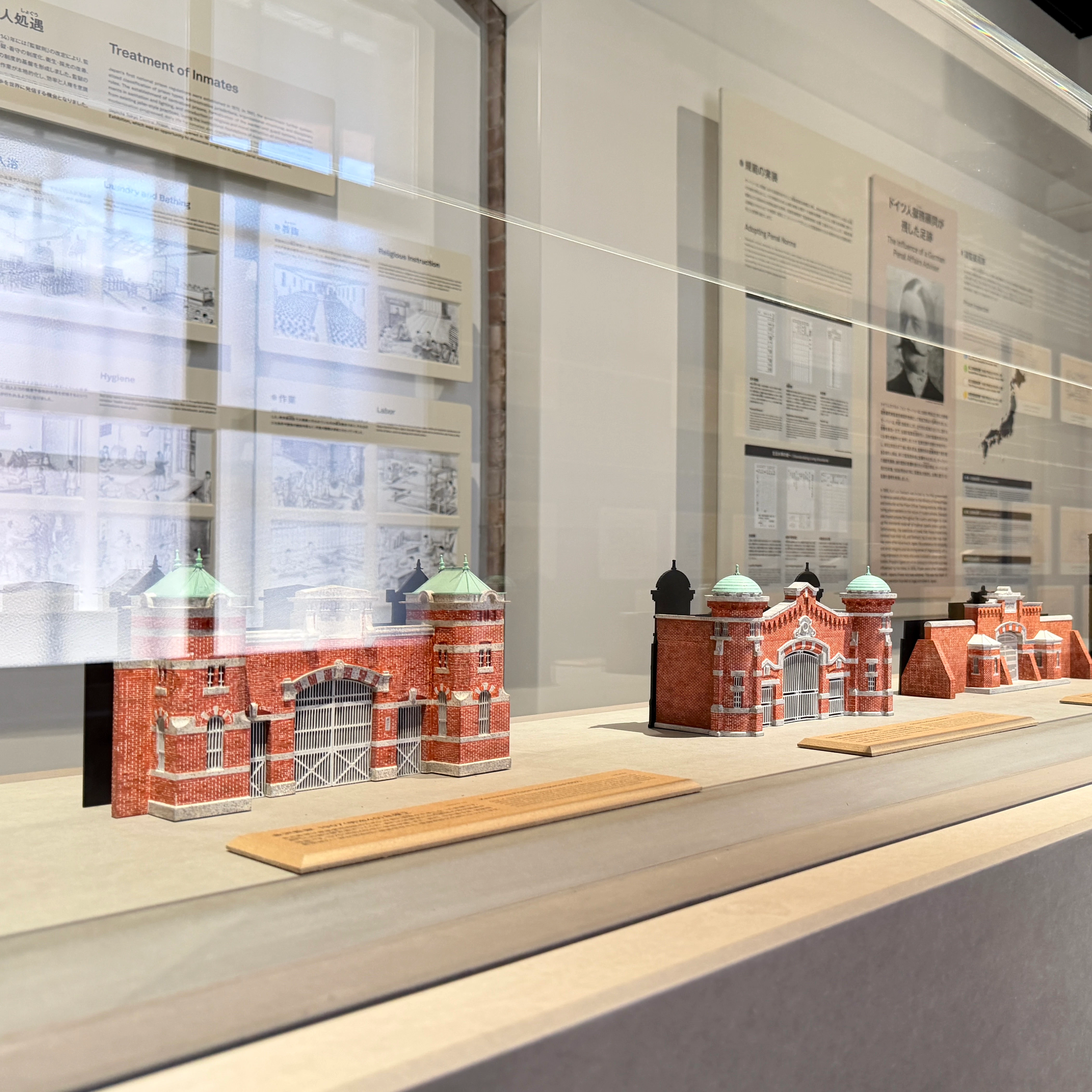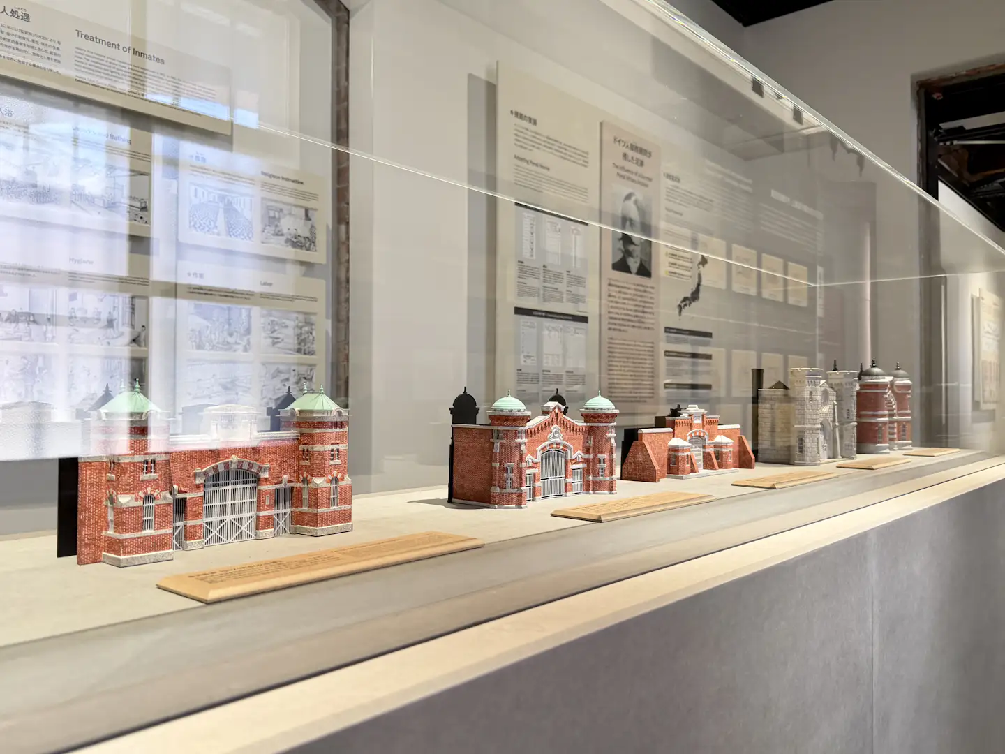 A棟「歴史と建築」は8つの展示で旧奈良監獄の成り立ちと日本の行刑史を体系的に紹介し、その建築的特徴を紐解くもの。