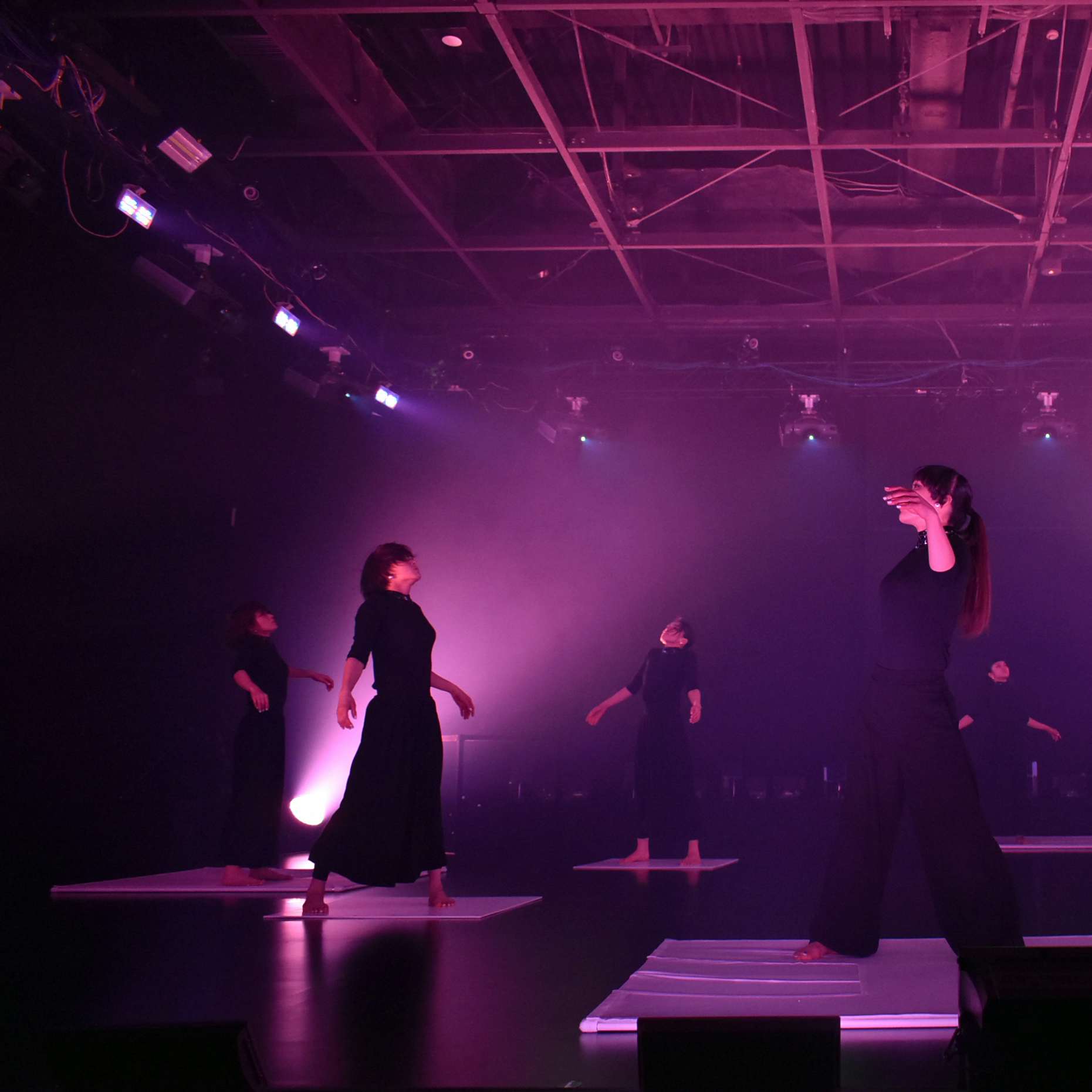 今回のダンス・インスタレーションは、マーカーを使い、それに光が追従するという演出がなされたが、この制作過程について真鍋は次のように語った。「僕たちは振り付けはつくりませんが、新しい振り付けが生まれるような環境をつくることを目指しています。今まではドローンやAR、VR、映像などを使ってますが、そういったものが入ることで、いままでダンサーだけでやっていたものとは違う動きが出てくるといいなと思って仕組みを考えています。まだまだ技術的には課題もありますが、(『phosphere』は)いまある技術で実際に舞台芸術で使えるものではベスト」。