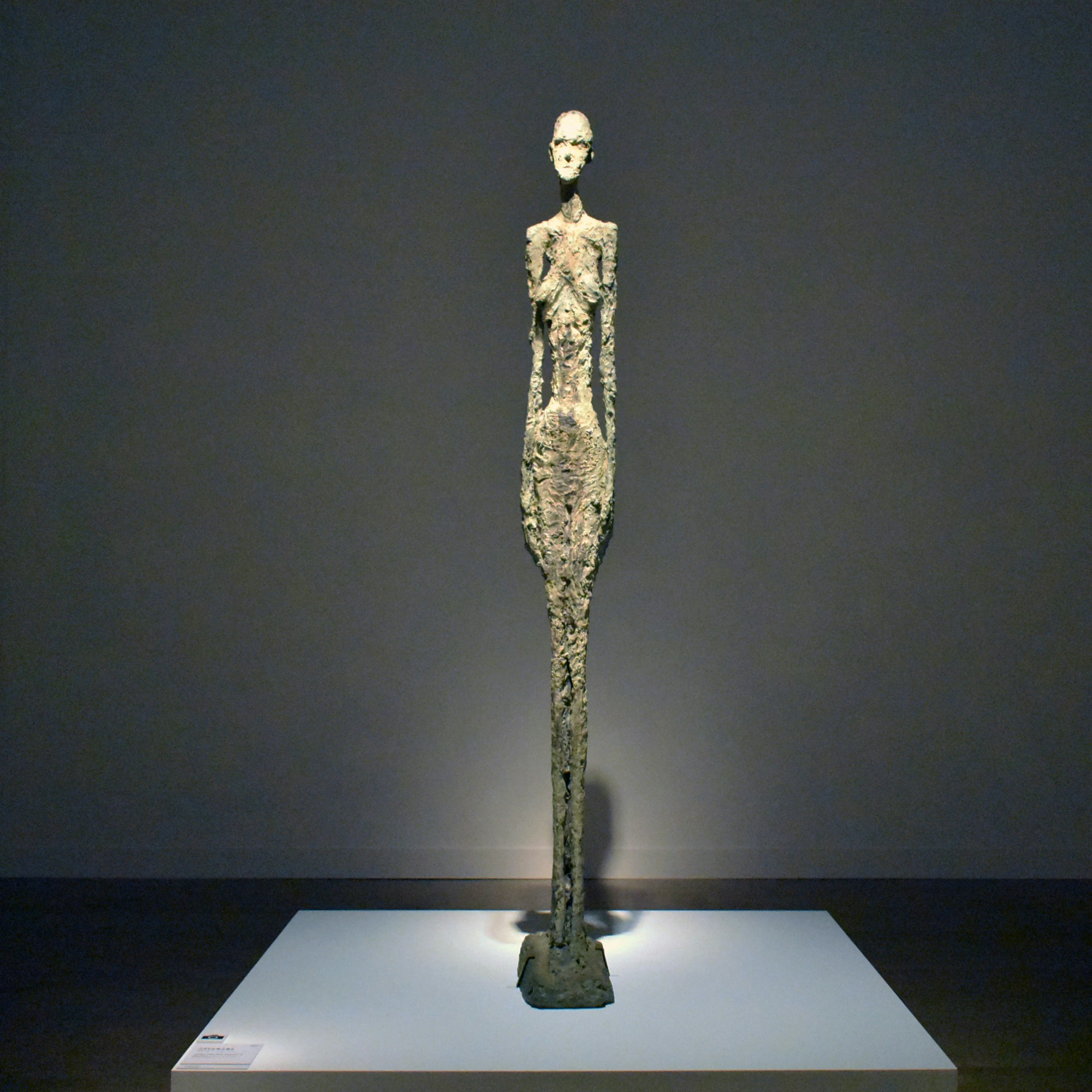オセアニアの彫刻や、キュビズム、そしてシュルレアリスムなど、同時代に起こった様々な動向を吸収したジャコメッティは、1935年から身体を線のように長く引き伸ばした独自のスタイルを生み出し、その造形はジャコメッティの代名詞となっている。