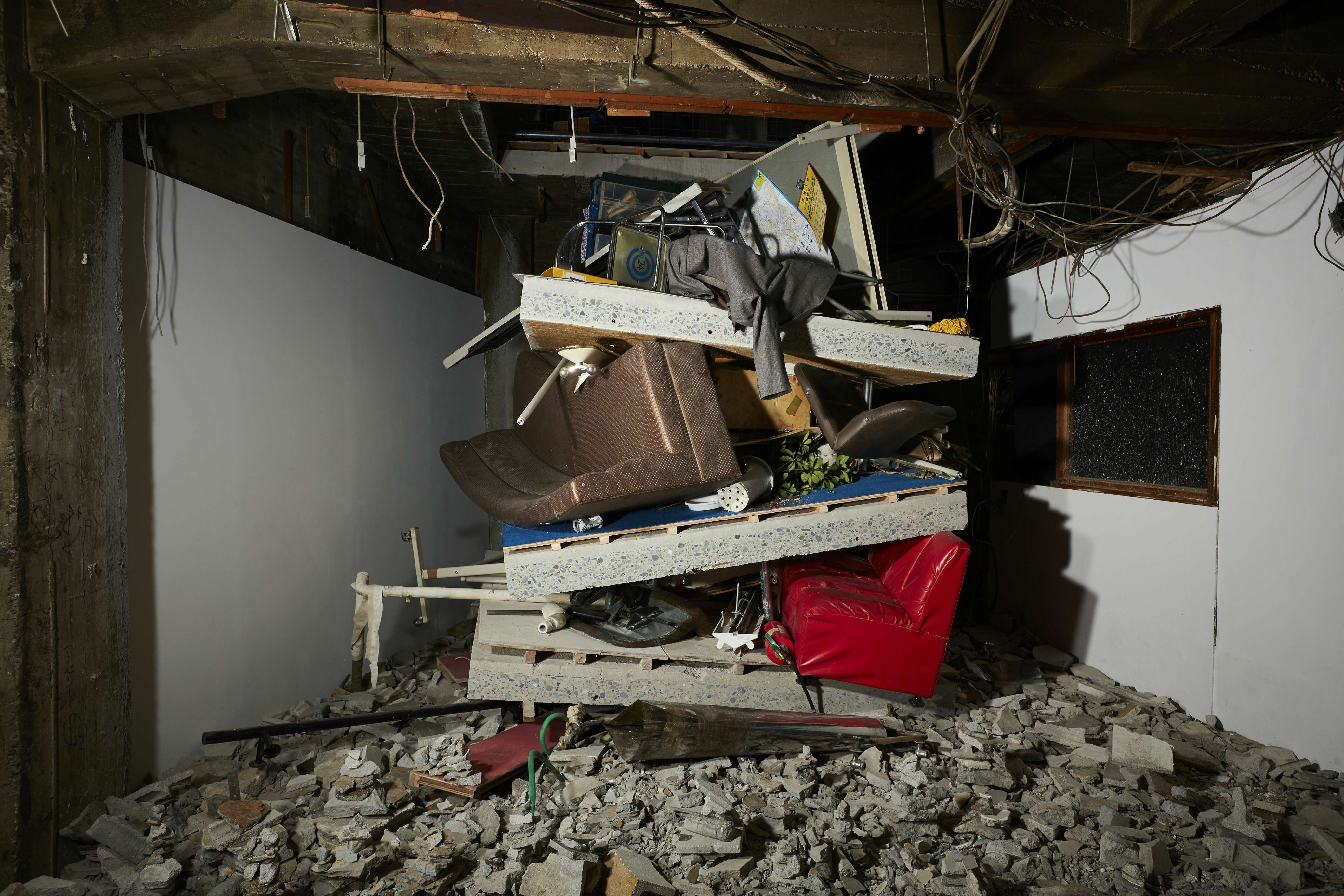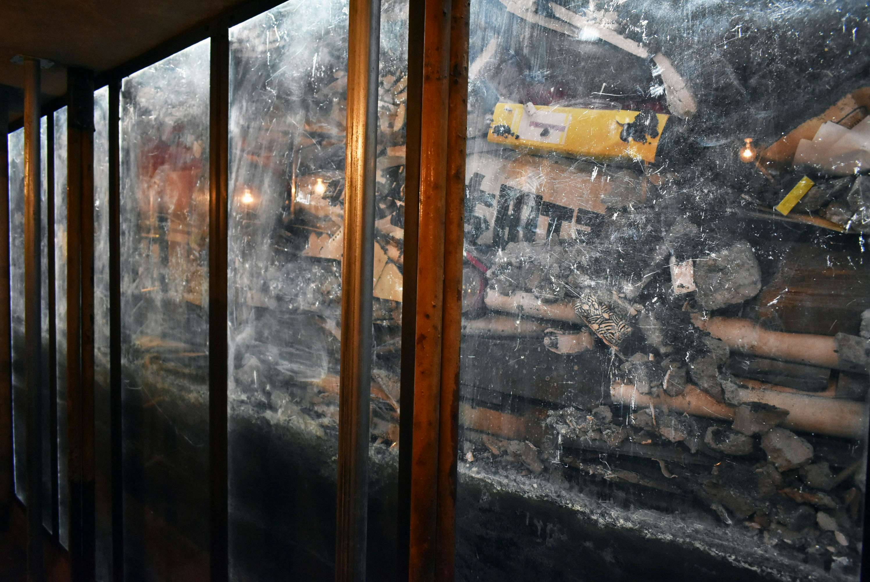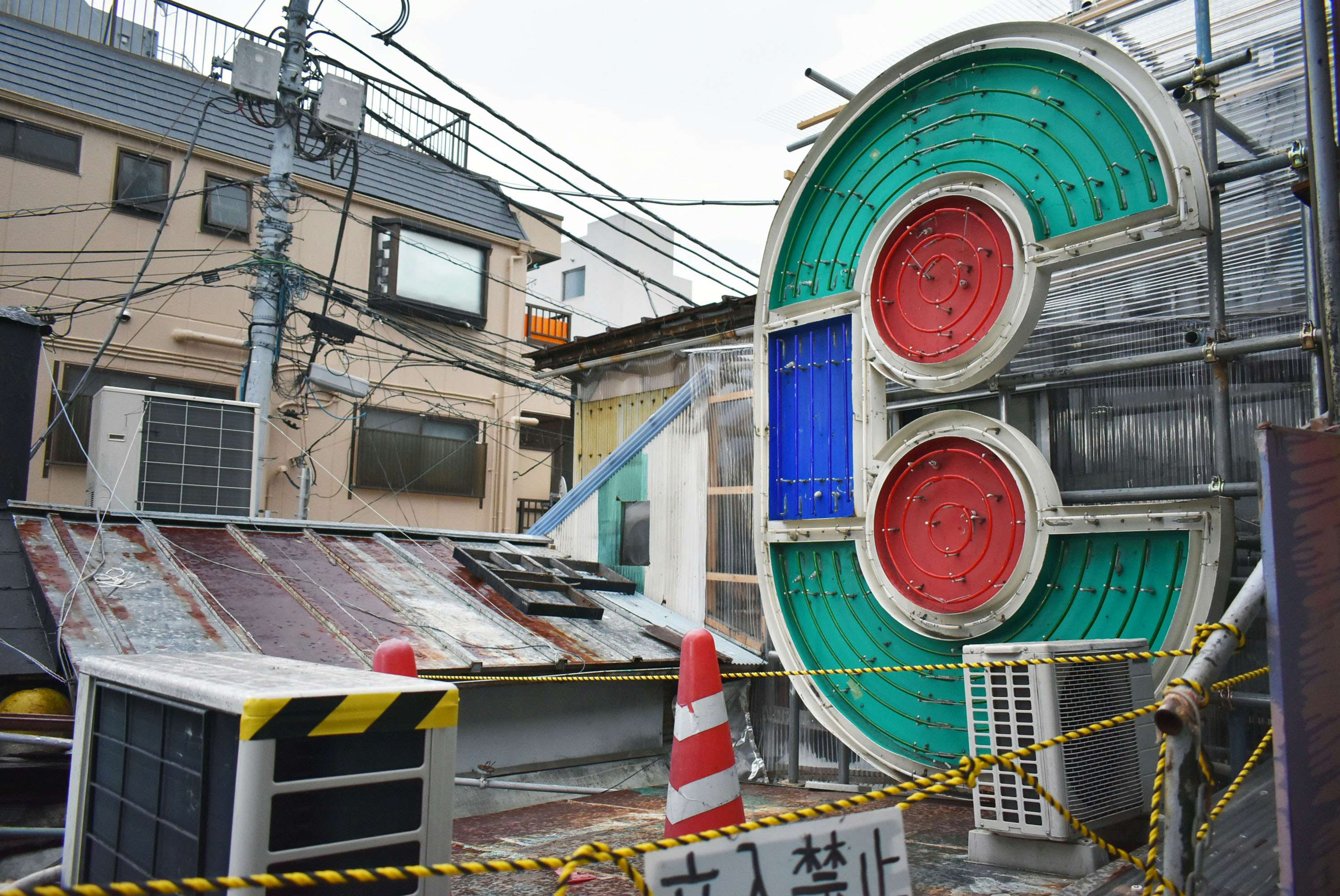 Chim↑Pom《SUPER RAT -SCRAP & BUILD-》(2017)の一部。ビル解体とともに破壊されたジオラマがそのまま使用されている