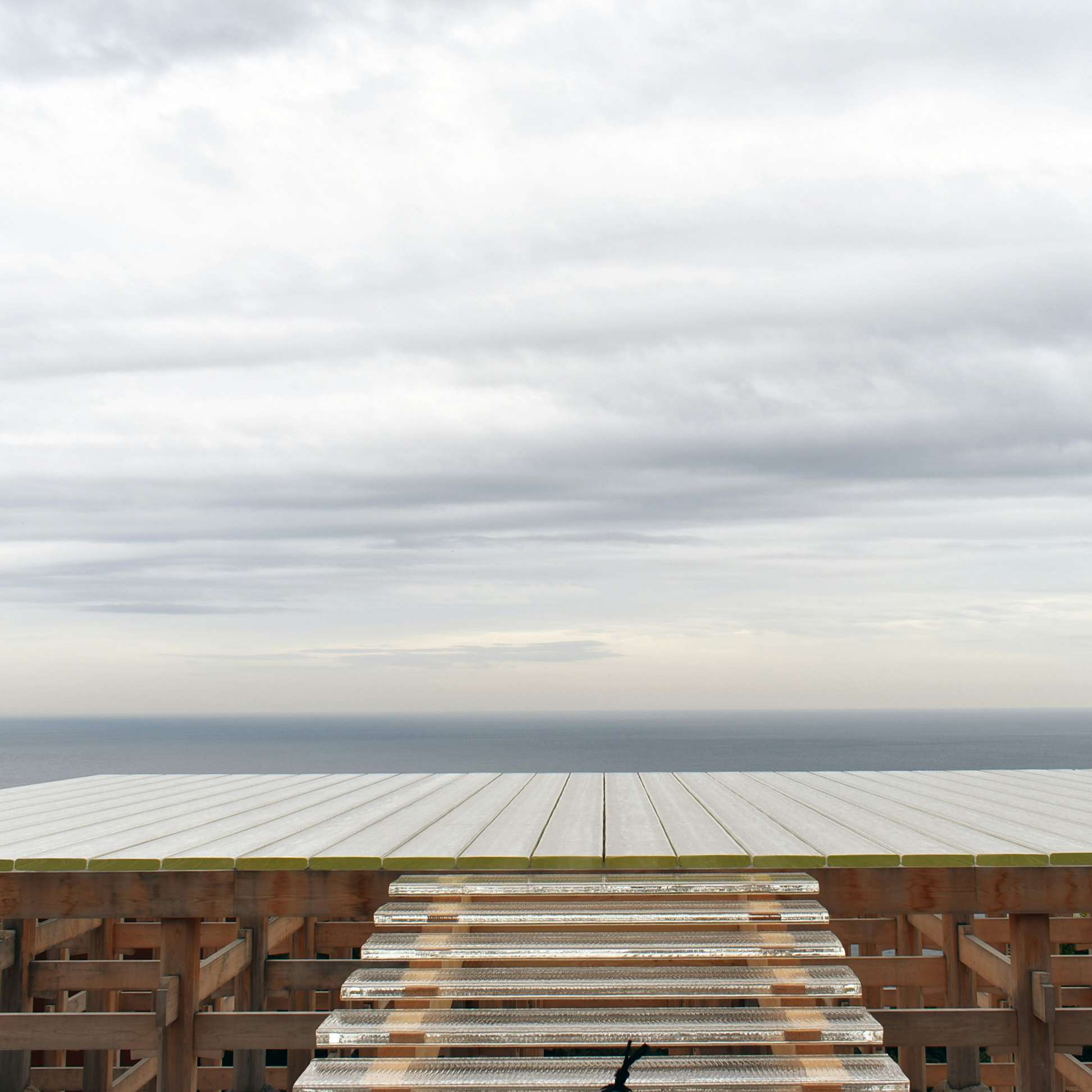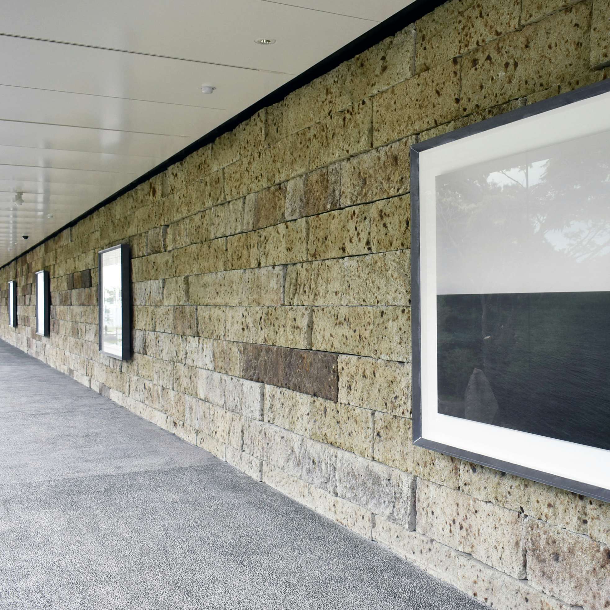 上述の「冬至光遥拝隧道」と対をなすのが、「夏至光遥拝ギャラリー」。長さ100メートルのギャラリーの壁面は大谷石で覆われて、対面には一切の支えがない37枚のガラス窓が続く。ギャラリー内には海景シリーズが展示されているほか、先端部は海に向かって開かれており、実際の水平線を展望することもできる。
