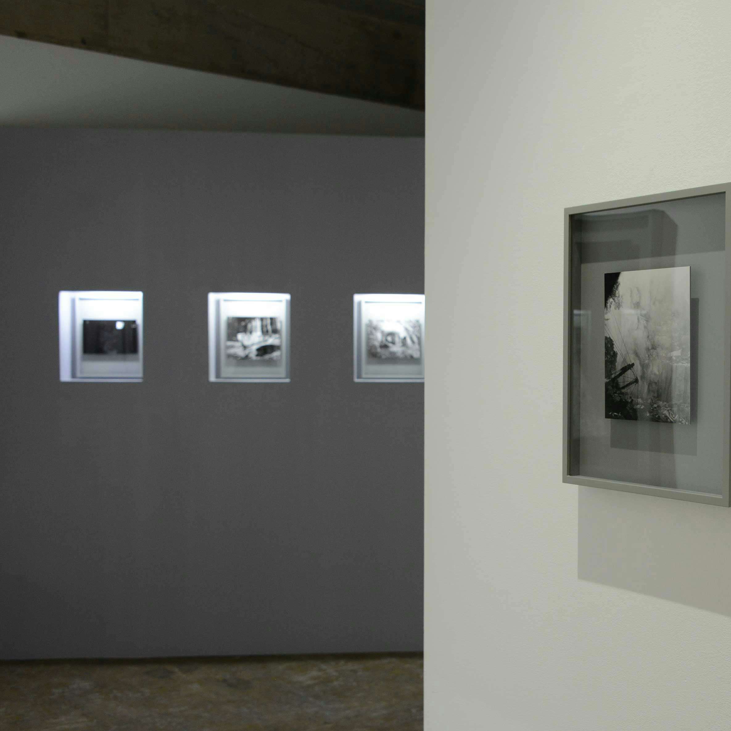 そして吉田の実践として特筆すべきもうひとつの点は、展示空間である。それぞれの作品の出力方法の思案もさることながら、吉田は物理空間において写真を鑑賞する際の流れのようなものを緻密に設計している。入口すぐ右手にはグレーの壁がそびえており、私たちはやや小回りをして会場奥へと入らねばならない。鑑賞者にもたらされるこの負荷は、吉田の写真が備えている負荷と同期する場合にかぎり、非常に説得力を持つこととなる。