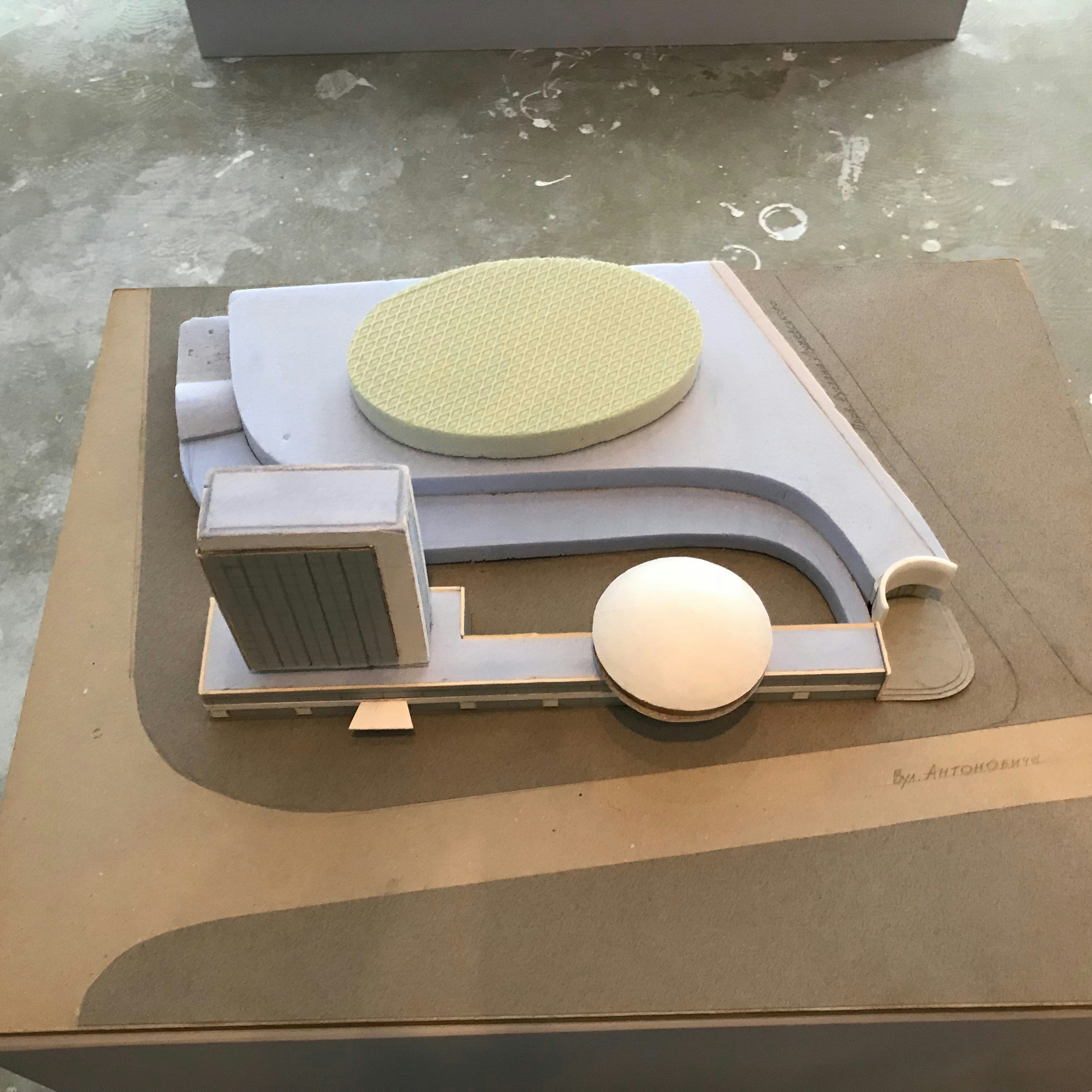 では、同じく旧ソ連時代の「遺物」であり、現在お土産物屋となっている「セペリア」会場において、UFOはどのように、そしてなぜ展示されていたのだろうか。展示空間においては、ひっそりとUFOとショッピングモールの模型が展示されていたのであるが、それはユリエフの態度を共有したかったからにほかならない。キエフに現存する旧ソ連時代の建築物を保存しようという呼びかけに対して、すでに89歳となり、長らく建築に関わることなくバイオリンを弾き過ごしていたユリエフは、「ショッピングモールと UFO」の連結プランを自分自身で設計し、ディベロッパーに向けて提案したのである。展示されていた模型とは、まさにこのユリエフのプロポーザル用模型であった。