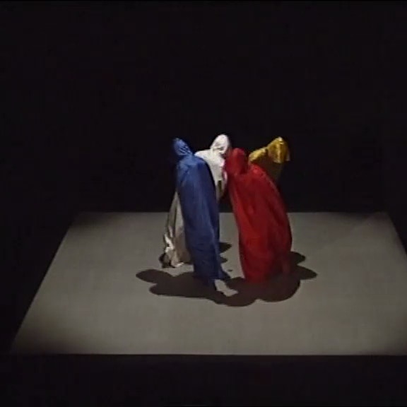 形式的にどう見てもベケットの作品を意識しているとしか思えないものもいくつもある。《ぼた山》の黒々とした衣服の山は、『しあわせな日々』で主人公のウィニーが1幕では腰まで、2幕では首まで埋まっている小丘にそっくりだし、《発言する》の人形たちの様式化された前傾姿勢は、1981年の映像作品『クワッド』に登場する、4人の歩行者を彷彿とさせずにはいられない。《心臓音》と題されたインスタレーションにおいて、大小多数の濃い灰色の長方形に埋め尽くされた周囲の壁は、ベケットが『モノローグ一片』の中で描写する、かつてたくさん写真が貼られていたはずのあの空虚な壁そのものだ。