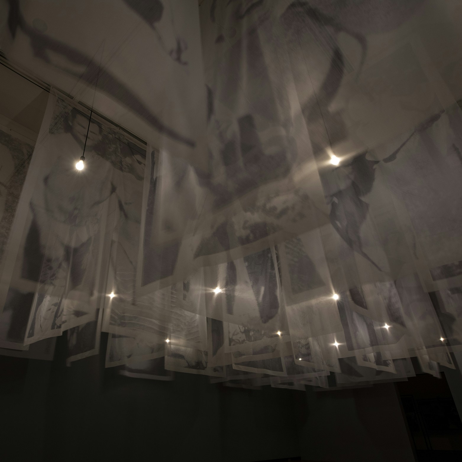 また後期の劇作やラジオ、映像作品の中で、ベケットは死者ないし亡霊のような人物をよく登場させたが、「影」「スピリット」「モニュメント」「聖遺物」「その後」など、本展の会場を埋め尽くす大半の作品も、存在を希薄化させた「亡霊」ないし「死者」を連想させるものが圧倒的に多い。