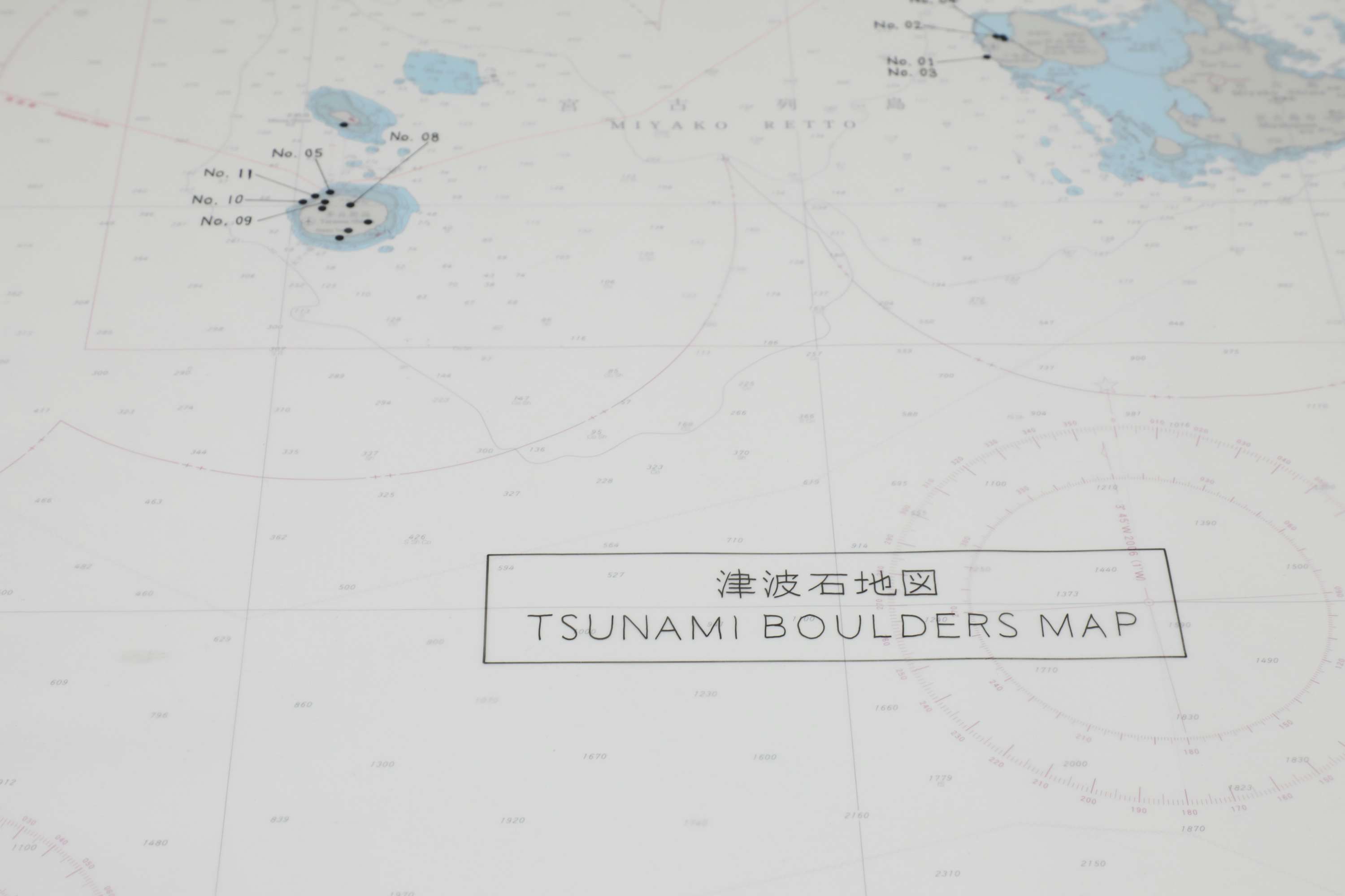 展示風景より、下道基行が《津波石》を撮影した場所を示す「津波石地図」 Photo by ArchiBIMIng