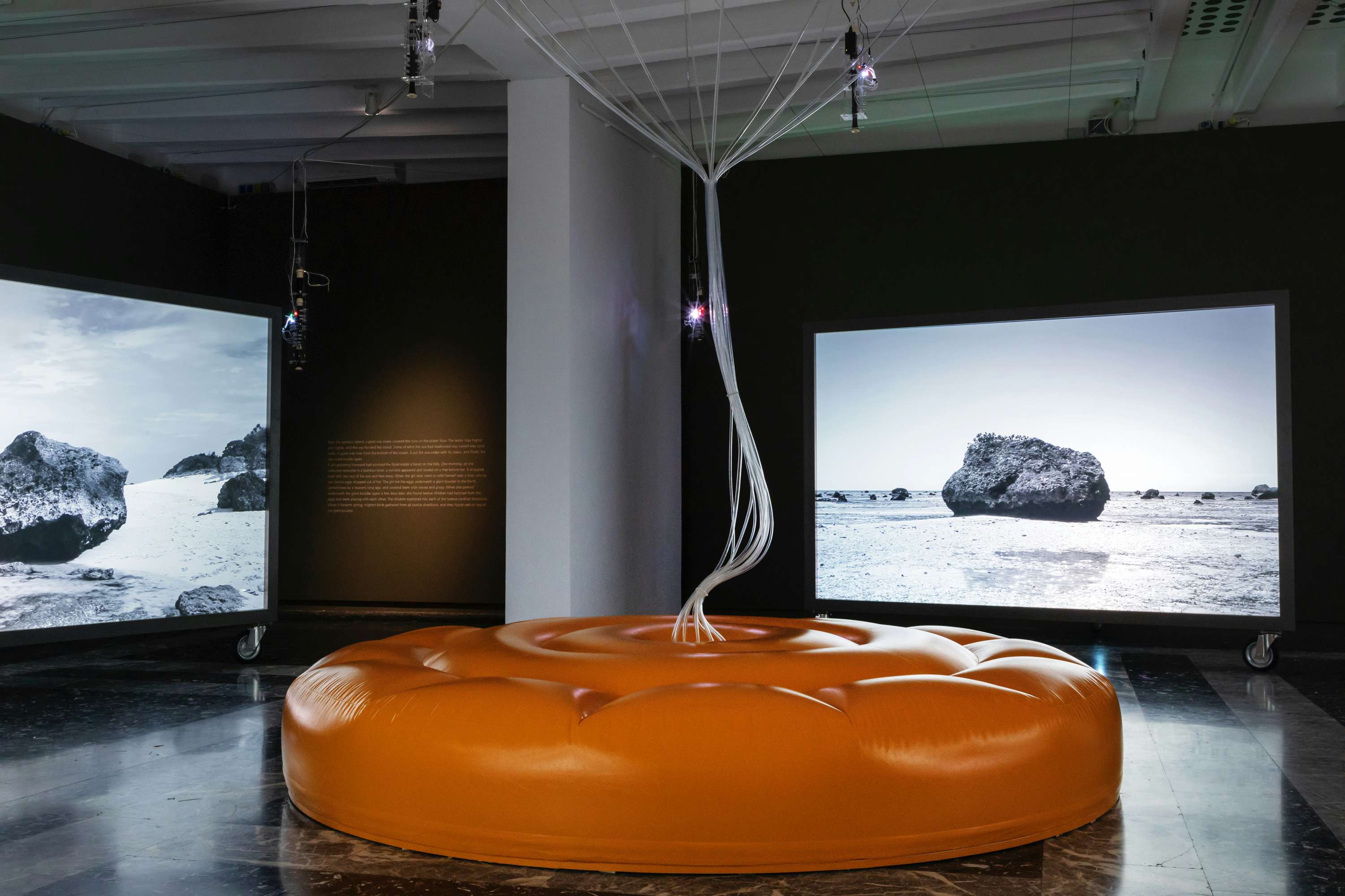 展示風景より、安野太郎《COMPOSITION FOR COSMO-EGGS  “Singing Bird Generator”》(2019) Photo by ArchiBIMIng
