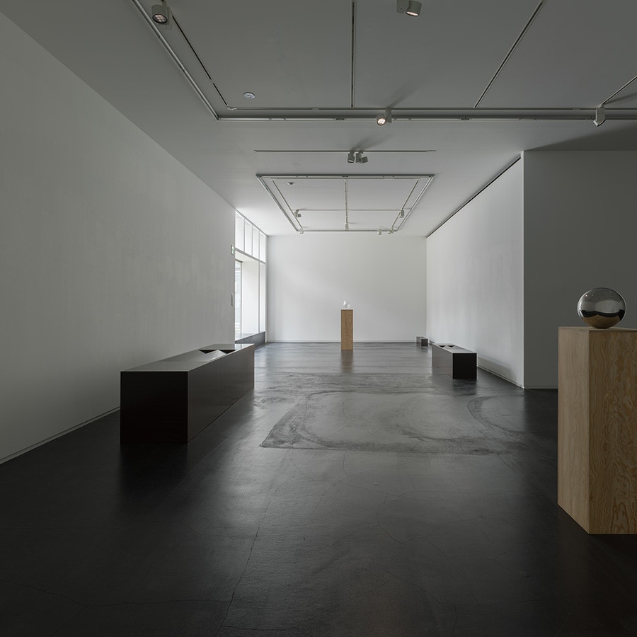 タカ・イシイギャラリーの六本木スペース、備え付けの重厚な黒壇のカウンターテーブル、黒いモルタルの床、L字の空間と奥から注ぐ自然光、外の大きな鉢植え。これはその空間自体を空間の中に反復する試みである。75%、50%、25%にそれぞれ縮小したカウンターテーブルのミニチュアは、オリジナルと同じ品質で、その為に全く別の機能性が示唆されるかもしれない。あるいは縮小される度に、空間やその意味さえも濃縮された象徴的なオブジェになる、その一連の過程であるとも言える。遠近法のイリュージョンによって、部屋全体がいつもより奥深く、より一層入り難く感じられることを想定している。