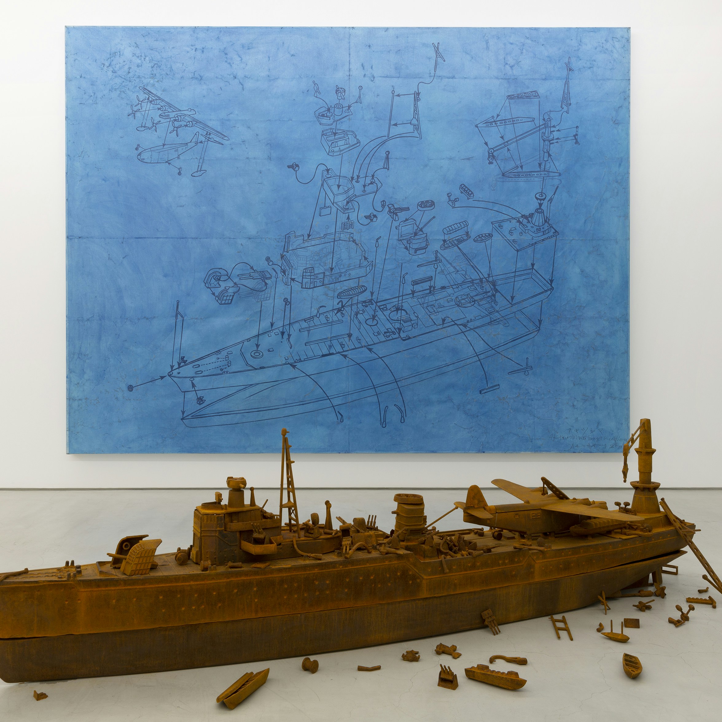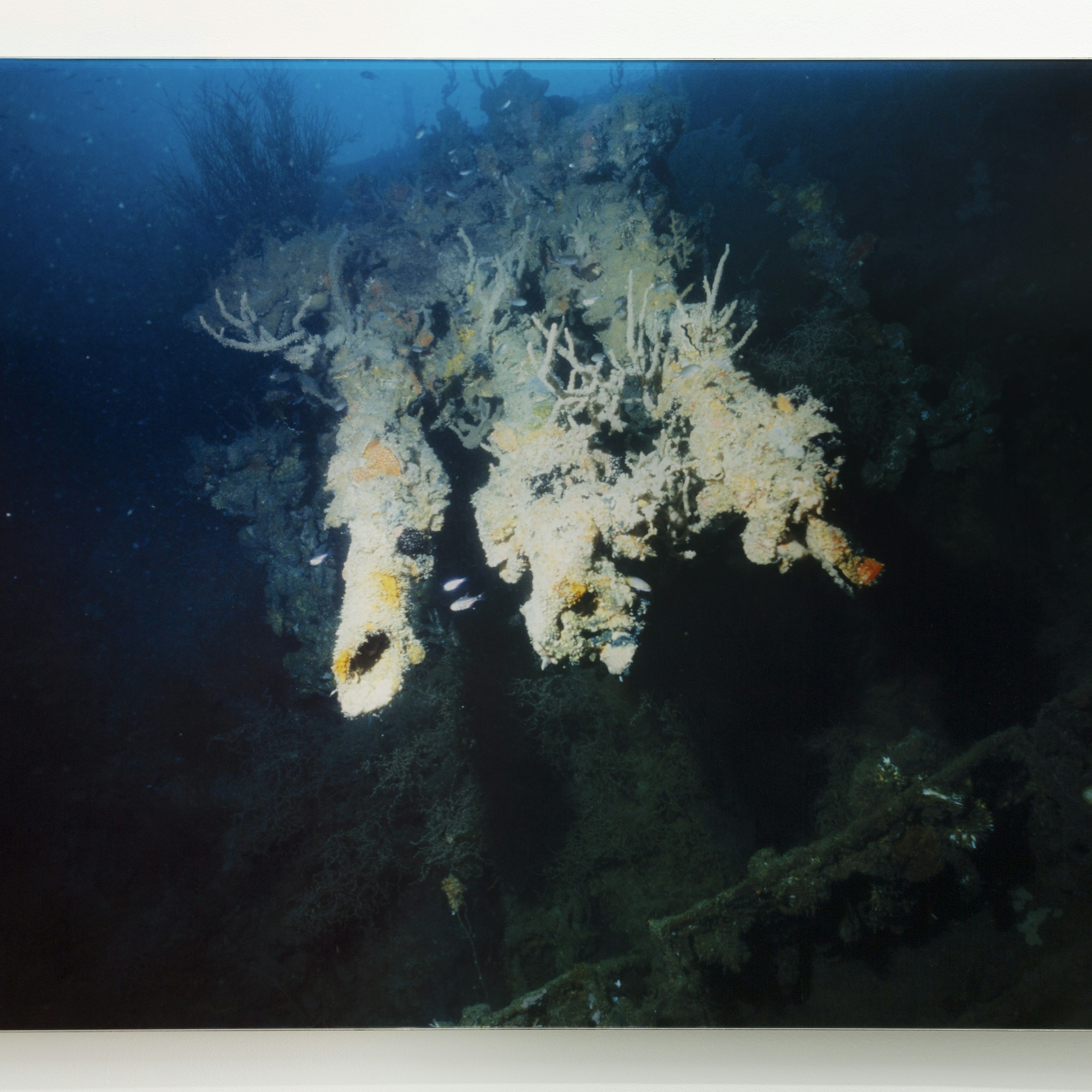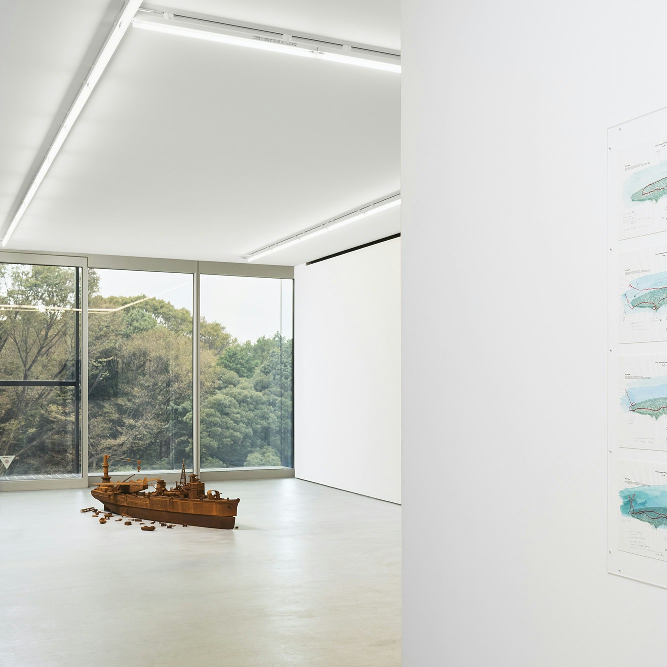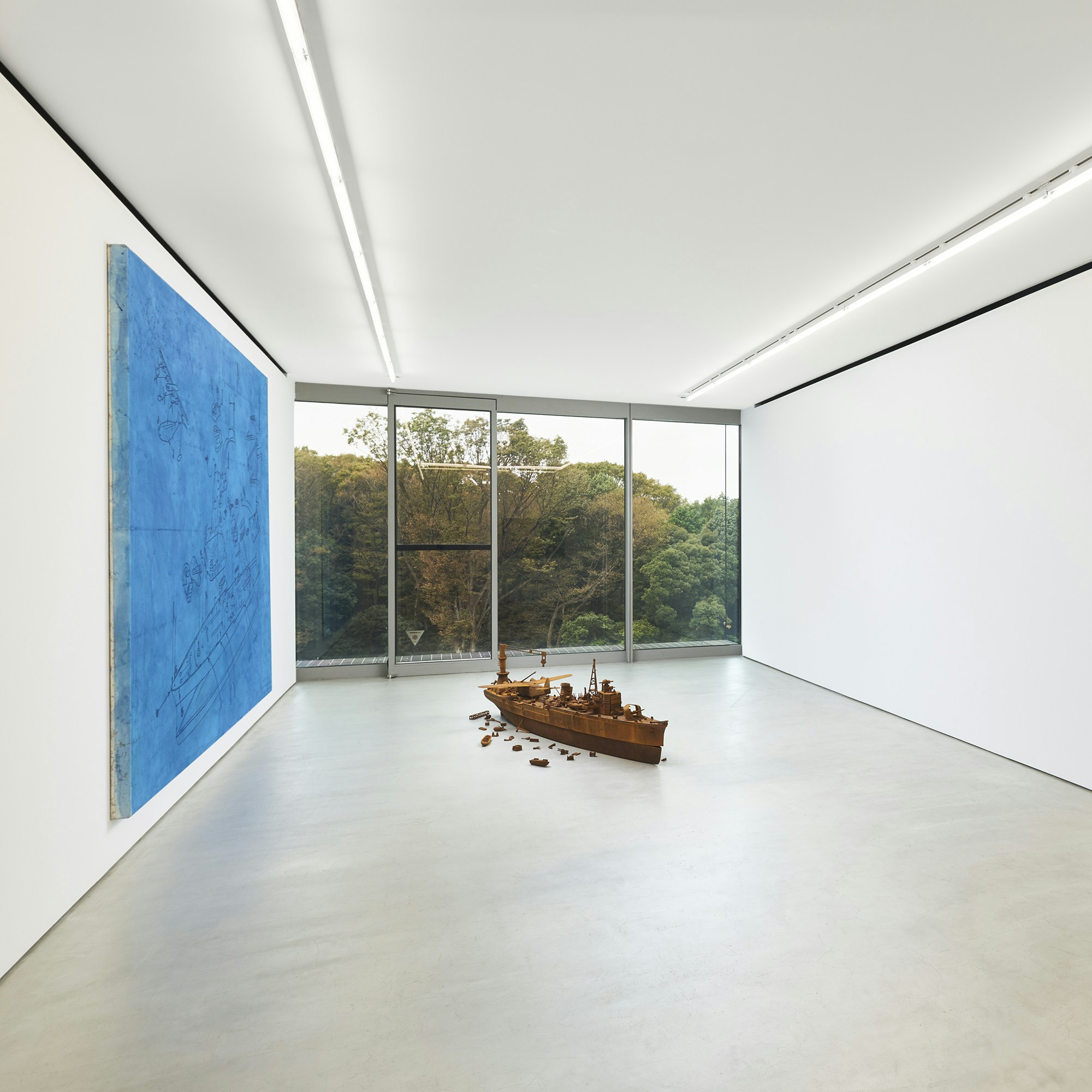 フィリピンはコロン湾の水深33メートル地点で現在も沈黙し続ける旧日本帝国海軍の水上機母艦「秋津洲(あきつしま)」。Blum & Poeでの柳幸典の初個展は、1990年代後半から2000年代初頭にかけてつくられたこの秋津洲をめぐる旧作と新作によって構成された。