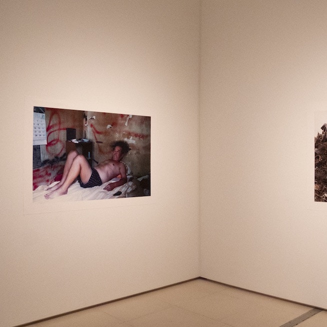 1970~80年代生まれの4名の作家は写真や映像を中心に作品を発表している。最初に展示されていたのは伊波の写真作品だ。年代順に展示された「矛盾の中で眠る」「Design of Okinawa」「71-diary」「Nowhere」の4つのシリーズはどれも沖縄で撮影されているが、伊波の写真にはあえて選び取ったような曖昧さがある。「Design of okinawa」の米軍基地のフェンスや、「71-diary」の基地内で暮らす人々のポートレイトには、生まれ育った沖縄という土地を確かめるようにシャッターを切る、肯定とも否定ともつかぬ伊波の視点が見て取れる。