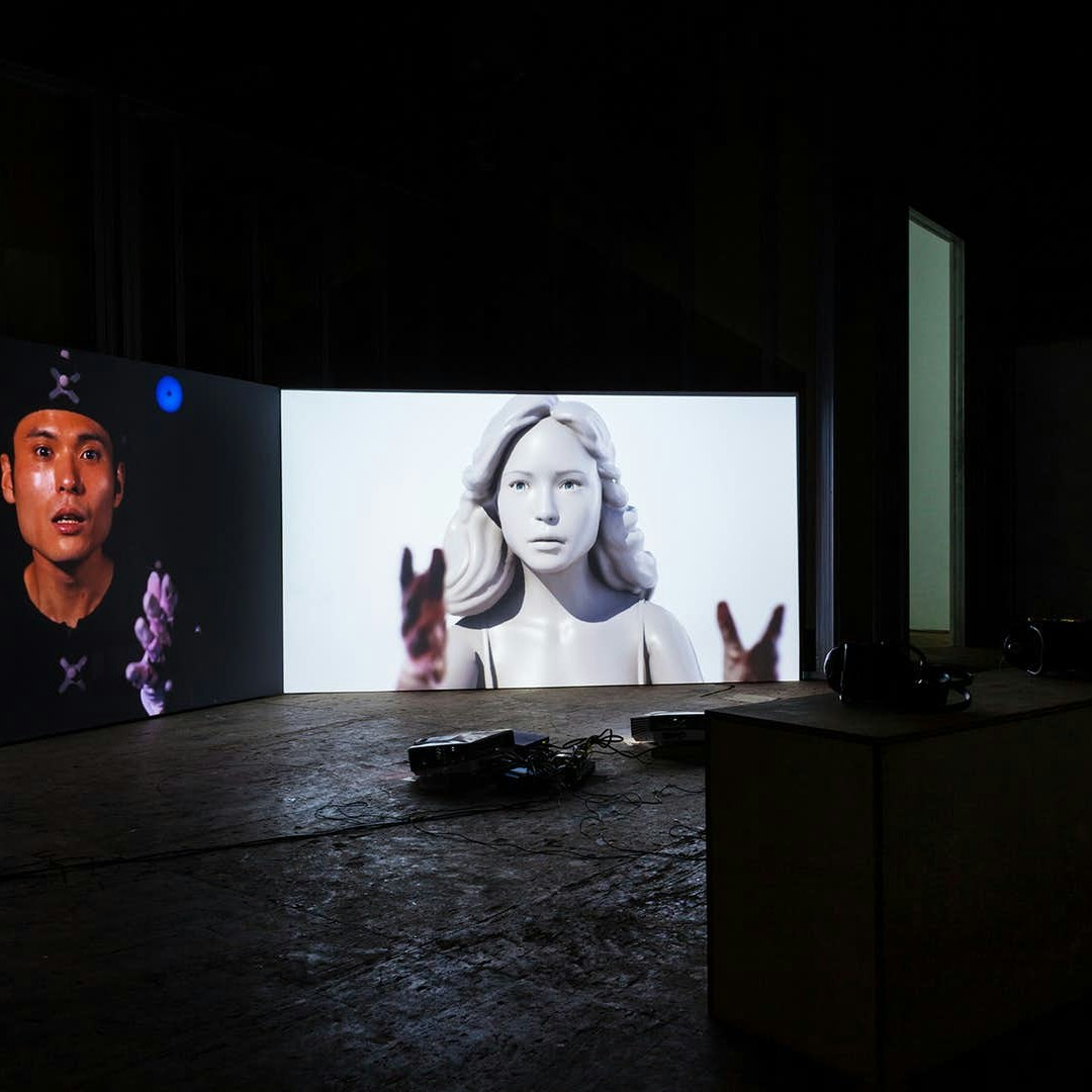 主に身体と声の問題を扱う映像作品を手がけてきた百瀬文が、東京では3年ぶりとなる個展「I.C.A.N.S.E.E.Y.O.U」を東京・東葛西のEFAG EastFactoryArtGalleryで開催。本展は、オペラ『サロメ』をモチーフとした映像インスタレーション《Jokanaan》(2019)を中心に、新作3点で構成された。百瀬は映像というメディアがはらむ支配構造をどのように組み換え、そこに写し出される身体といかに向き合うのか? アーティストの佐藤朋子がレビューする。