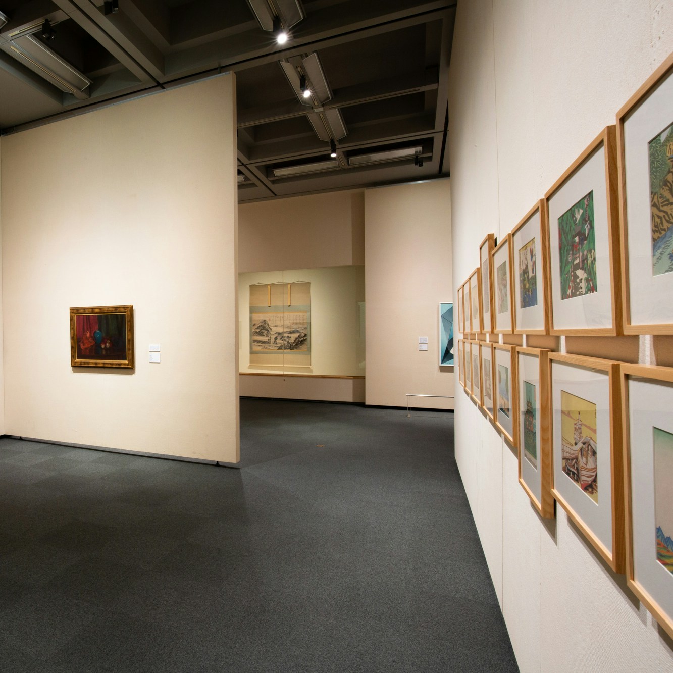 展覧会の冒頭では練馬区立美術館のコレクションが「歴史」の視点で紹介され、その後4人の現代作家によるコレクションの「再構築」のセクションが続く。選ばれた現代作家は、流麻二果、青山悟、冨井大裕、大小島真木の4名。彼らが同館の所蔵する20〜21世紀初頭に制作された作品の「再構築」を試みるにあたり、それぞれ「色」「メディア」「空間」「身体」という、4つのキーワードが設定された。また、プレ展示や公開制作など、作家が美術館の空間やコレクションについての理解を段階的に深めていく期間が設けられていた点も特徴である。