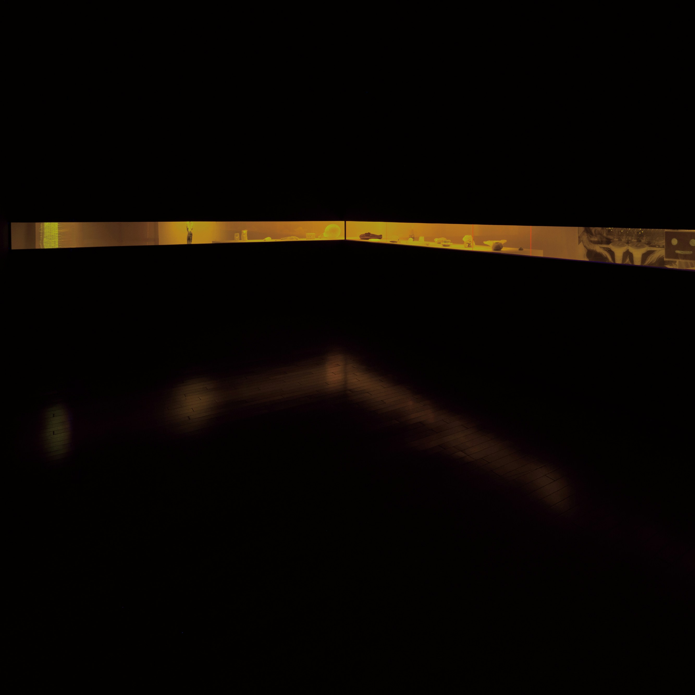 例えば今回、RMCは国際現代美術展や芸術祭で必須のものとされるテーマをもとより設定していない。かれらが着想源としたのは、「トリエンナーレと次のトリエンナーレとのあいだには1000日ほどある」という物理的な事実だ。限られた開催期間を通じて発信されるにすぎない確定的なテーマを設定するよりも、その期間を超えて継続的に世界各地へと発信し続けられる複数のエピソード──トリエンナーレに関わる者たちが長期間にわたりこれらのエピソード群を共有するための源泉として、彼らが「ソース」と呼ぶ複数のテキストが準備されている──のほうを重視したのだ。その持続性が、ちょうど今回のトリエンナーレのタイトルにもなっている「AFTERGLOW(アフターグロウ=残り火)」のじわじわとした、しかし高温の熱のように時間と空間を超え、1000日というインターバルを通路に、予想もできないかたちで世界へと広がっていく(ウイルスのように?)。むろん、それらは新型コロナウイルス感染症の世界的な蔓延で当初の計画通りには行えなくなってしまった。また会場のスケールや関連プログラムにおいても物足りない部分は残るかもしれない。しかし展示だけにとどまらず、会場の各所に設置された残光や燐光を思わせるしつらえは、今回のトリエンナーレに、元来なら求められるはずの多様性の方便を超えて、一種のメランコリーのような感触を持続的に与えている。なんというか、全体でRMCによるひとつの作品(というか出来事)であるような印象も受けるのだ。