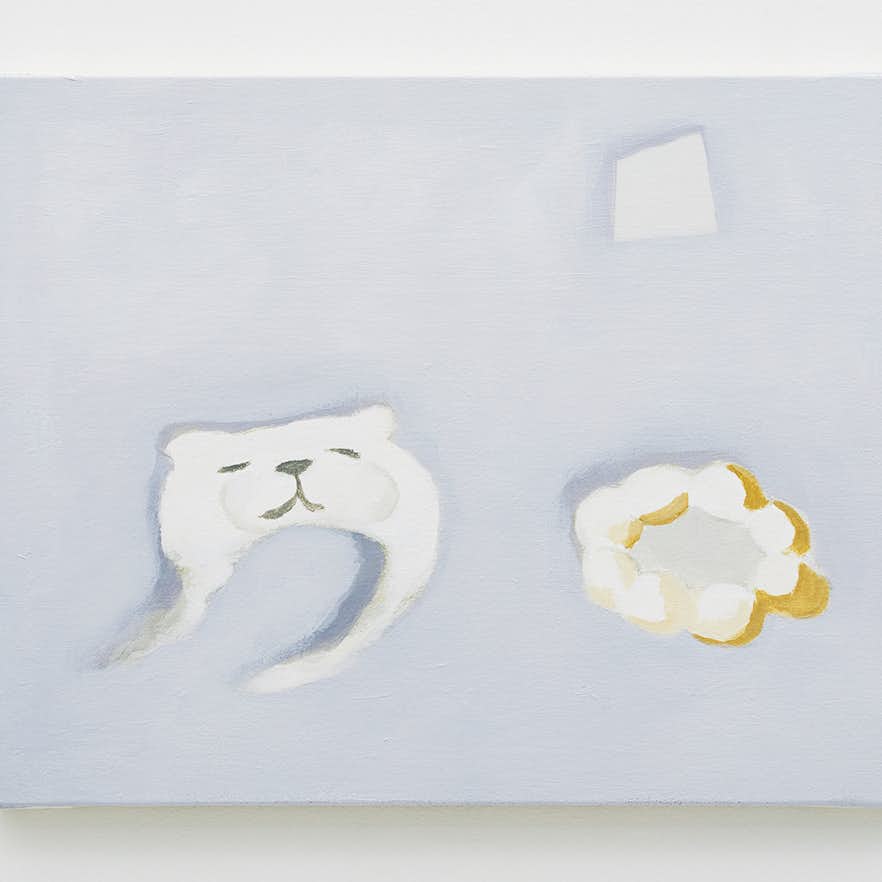 明るい終末感の漂う個展であった。淡い色彩で整頓された画面には、「遺品」「果て」「不通」など、孤独死やその後の特殊清掃を思わせるタイトルが添えられている。おなじみの「カワイイ」「幸せ」なモチーフたちの輪郭は緩く解けて、断片化したり合体したりしながら、地平線の見える遠い風景のなかに影を落としている。イヴ・タンギーを連想するかもしれない。が、奇妙なオブジェたちをくっきりと照らし出すようなシュールな光はない。プチブルの夢見る「幸せ」の象徴としてのシャンデリアを、ゲルハルト・リヒターは「heavenly cheap」なものとしてフォトペインティングに仕立てた。が、桑原正彦にそういう意図は見えない。