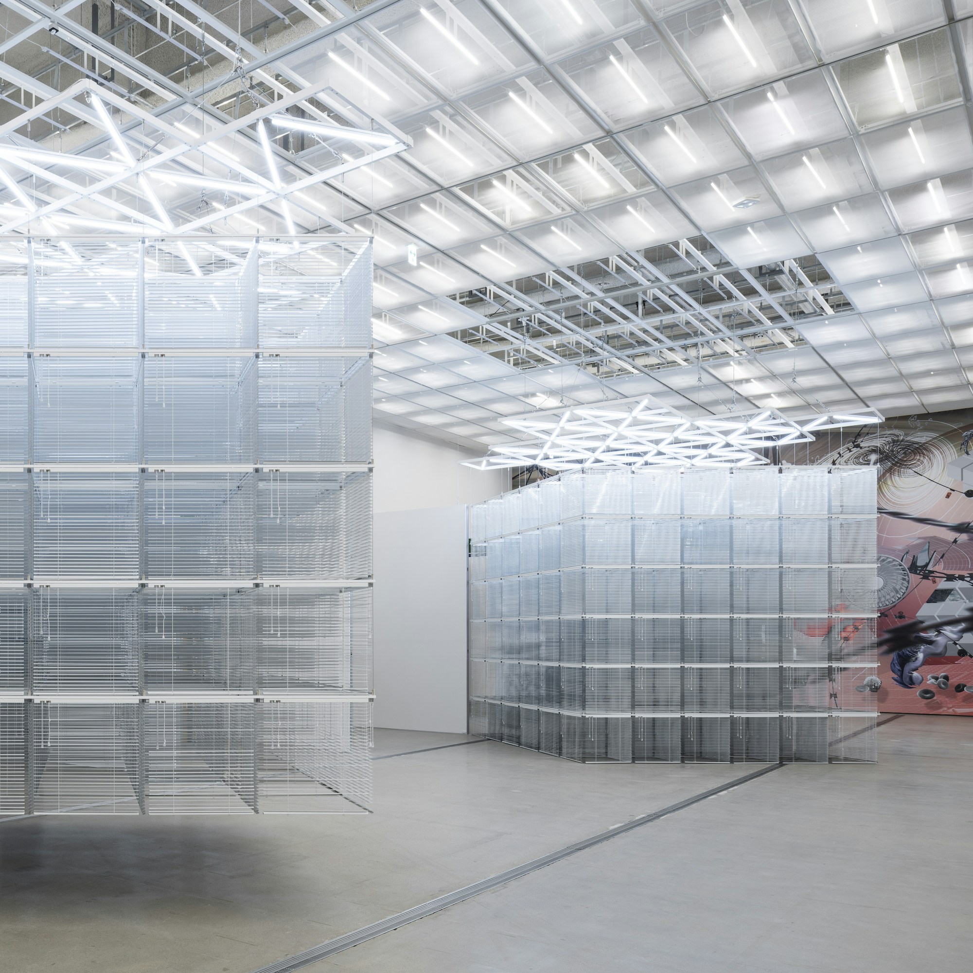 「O₂ & H₂O」展示風景より、左から《ソル・ルウィット逆さま―3倍に縮小された、構造物》《ソル・ルウィット逆さま―21倍に拡張され開かれたモジュールの立方体》(いずれも2020) Courtesy of Kukje Gallery. ​Photo by Cheolki Hong, MMCA, Korea.