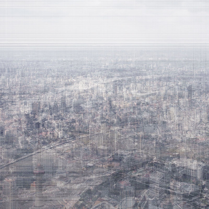 顧剣亨は、複数の写真から1枚のイメージを生み出すdigital weaving という手法で注目された新人。ヴァルター・ベンヤミンの『写真小史』のなかで、有名な「意識の織り込まれた空間の代わりに、無意識の織り込まれた空間が現れる」という箇所からの発想だろう。金糸を織り込んだ布のように、世界には意識も無意識も織り込まれていて、後者はカメラによって現れる、と。つまり世界は意識と無意識の二層構造ではないのだ。同様に、顧の写真も、多重撮影ではない。高層ビルからの東西南北全方位の全景をピクセル単位で1枚に「織り込んだ」作品は、いわば「全世界」の比喩であり、我々の全精神の比喩でもある。その1枚の面=全精神は、刻々と、見た部分と見なかった部分へ、意識と無意識へ、分割され続けている。意識とは、現在時におけるこの分割が過去にしていく(見た、見た……)世界にほかならない。つまり意識には現在という時制がない、これこそ「視覚的無意識」の要点だが、本展はそこまで届いていない。そのほか、暗い石炭の山で、個々の石炭の断面が星のようにひっそりと光る新作も美しい。