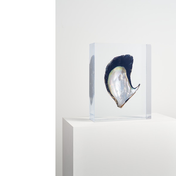 そう思ったのは、国境を超えて、両替をしたあの日のことがきっかけになっているのかもしれない。紙幣に描かれた肖像を取りだし、真珠貝の核としてそこに挿し入れた。古くから貝殻は加工され、装飾品として用いられたり、貝貨として交易で使用されてきた歴史がある。紙幣の肖像を貝殻に入れ、海へかえす。それは、貨幣の歴史を掘りおこすと同時に、生物種の存在にたいする内省でもある。(本展に向けた作家によるステイトメントから抜粋)