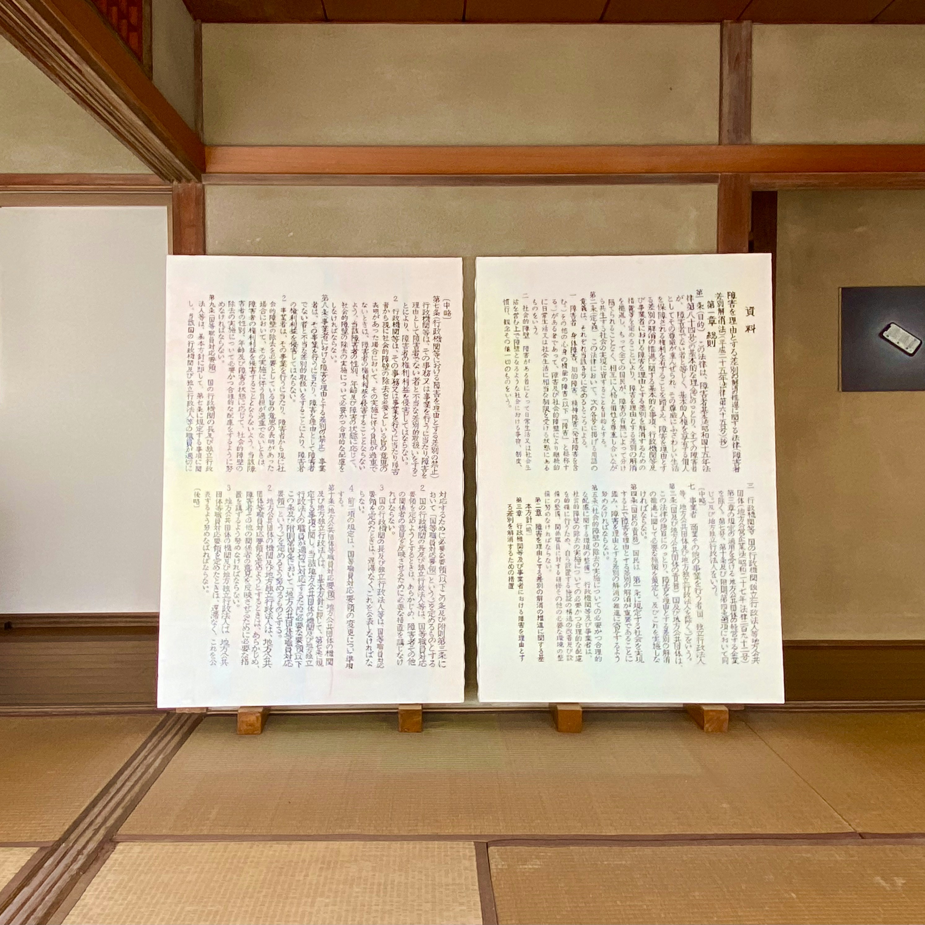 展示風景より、《障害者差別解消法(抄) 保坂展人『相模原事件とヘイトクライム』(岩波ブックレット、2016)