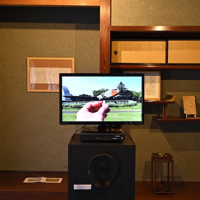 今回渋谷は、会場が古民家である特性と作品をいちばん合致させていた。もともと柔道の選手であったことから、身をもって体験してきた体育会系特有の「しごく/しごかれる」関係性を現代美術に横滑りさせ表現=技をかけてきた渋谷だが、近年はそこから祖父の戦争経験やそれぞれの歴史認識に興味を持ち、自らの身体で当時の彼らの心技体との距離をはかるべく、忠魂碑などに直接的なアクションを試みている。今回も、自らのルーツに関係していた寒河江ダムの話を収集し、かつて対立し異なる感情でダムをとらえていたであろう曽祖父と柔道の恩師の関係性にアクションを起こし、歴史の指標である碑や絵画に技をかけ、その重みと動かなさを実感する。