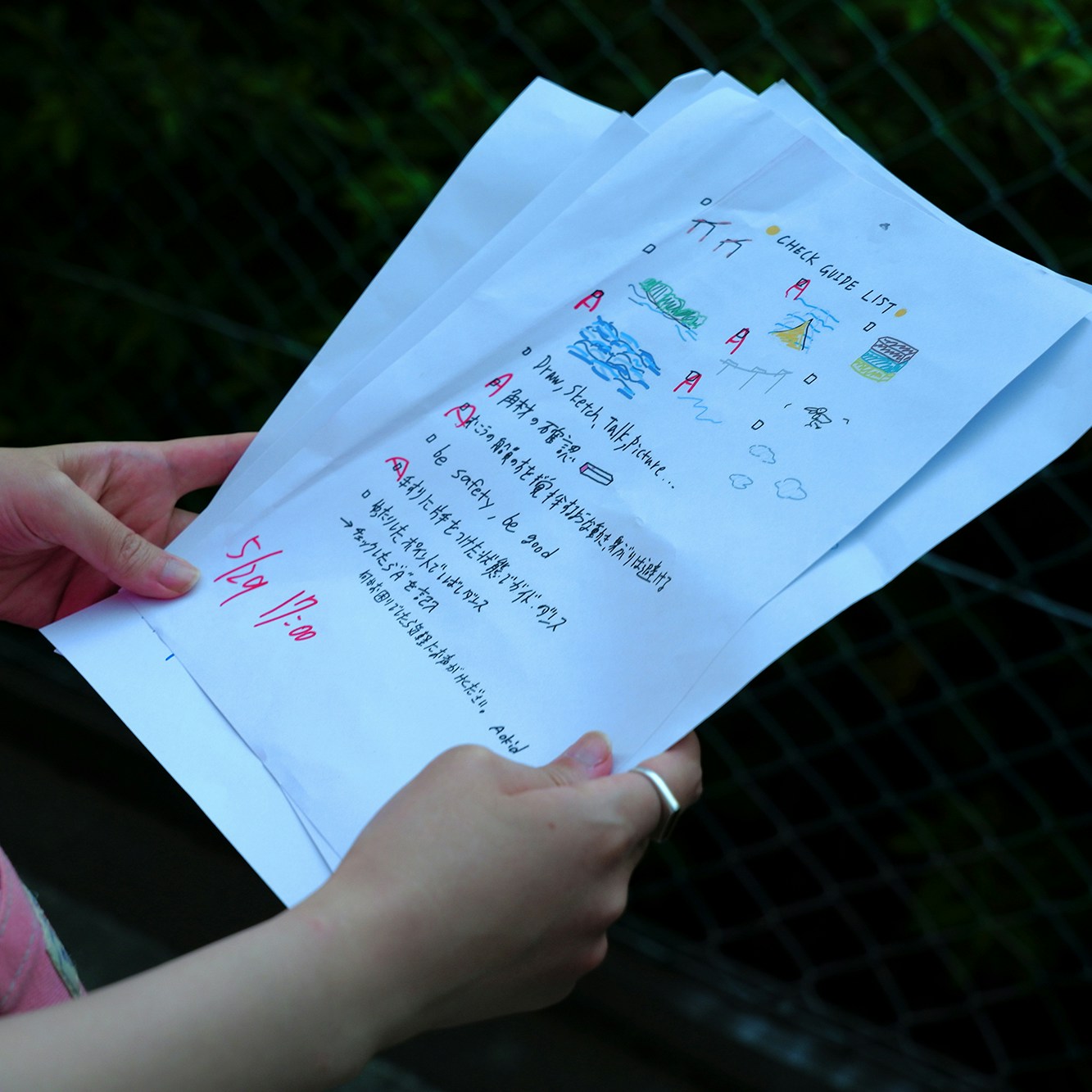 晴れた日のクルージングとはいえ、東京湾でも何が起こるかわからない。船に乗る前、船の後部出口から甲板に出てもよいが手すりから身を乗り出してはならないこと、有事の際の責任はそれぞれにあることが最低限の注意事項として言い渡された。参加者は全員ベルトタイプの救命胴衣を装着する。「be safety, be good」(*3)。快適な船旅であるに越したことはない。