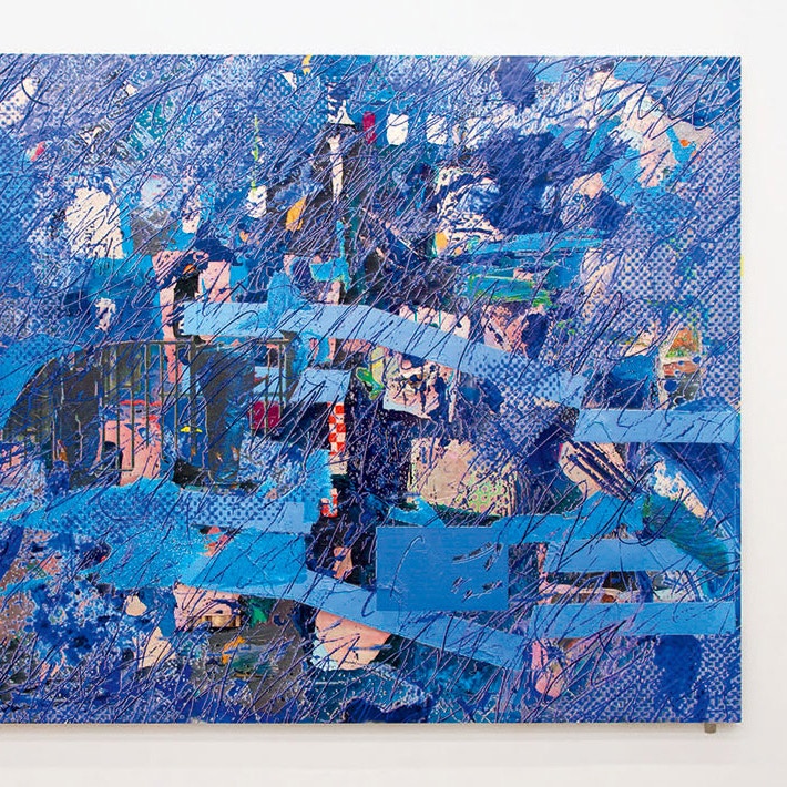 森美術館からcomplex665やピラミデビルへ向かう人が、途中、森タワー隣の建物の3階に移転したYumiko Chiba Associatesに立ち寄るなら、「交差点」とは対照的に「問題」のありかを教える解説がなく一瞥では何もわからない、じつに反時代的で爽快な個展を目にするだろう。最近移籍した金氏徹平の強烈な新作群が、満を持して展示されている。その主題は、絵画であり彫刻であり写真である(またはそのどれでもない)ものと言えるだろう。青い大作全体に広がる、引っ掻いたような描線に導かれ、サイ・トゥオンブリという参照点が見つかる。