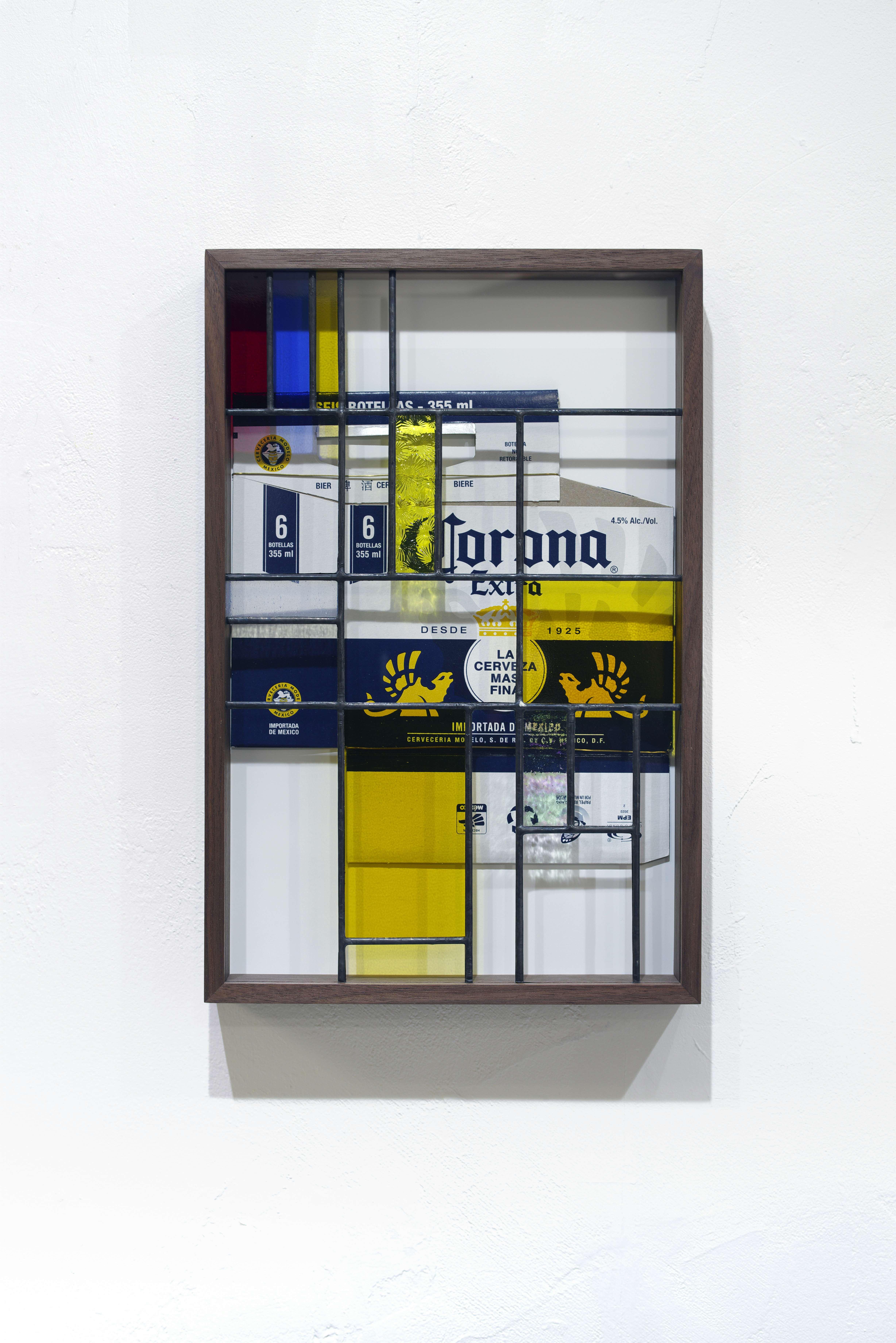 Mix and Match (Corona #4) 2023 Stained glass, wood, aluminum board, 6 Pack Cardboard Beer Bottle Carrier 42.2×27.9×4.6cm (c)Takashi Kunitani Courtesy of Ulterior Gallery, NY