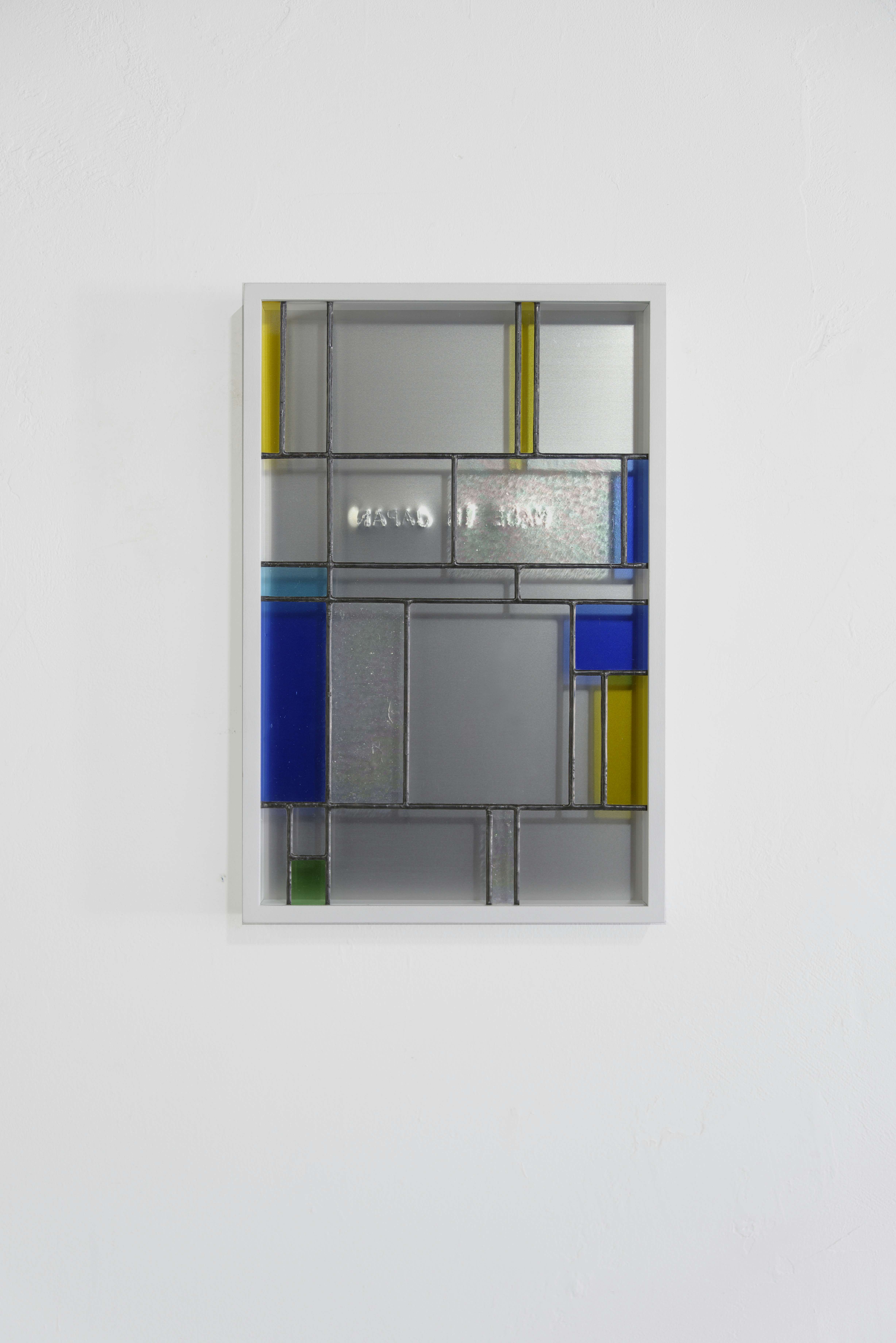 Mix and Match (MADE IN JAPAN) 2023 Stained glass, wood, engraving on aluminum board 42.2×27.9×4.6cm (c)Takashi Kunitani Courtesy of Ulterior Gallery, NY